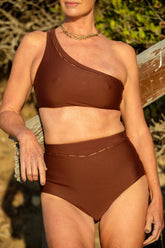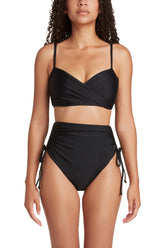 The East-Coaster. Hamptonite does Hollywood. High waisted, vintage cut bikini bottoms Flattering chevron slitting detailing Full coverage Double lined/ Seamless 80% Nylon / 20% Spandex Model in black is 5'7" with a 34B cup and 26" waist and is wearing Our Gidget Top and Selby...- From £60.00