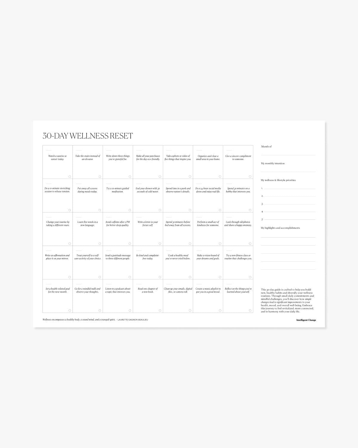 Want to make a change but don't have hours to spend on it every day? We get it. Our 30-Day Wellness Reset Challenge is packed with quick, daily challenges that fit into your real life. Whether you're a busy parent, a student, or hustling in your career, these small, practical steps are designed to slot into your day, not overhaul it. By the end of the month, you’ll be surprised at how these little changes add up to a big difference. Downloadable, easy-to-use digital and printable.