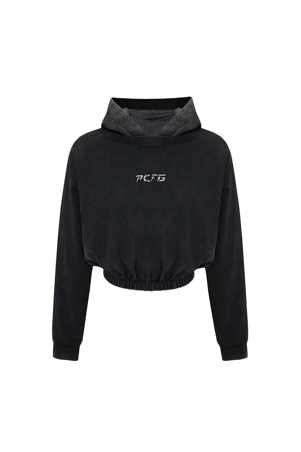 The Black Acid Washed Crop Hoodie stands out for several reasons:
