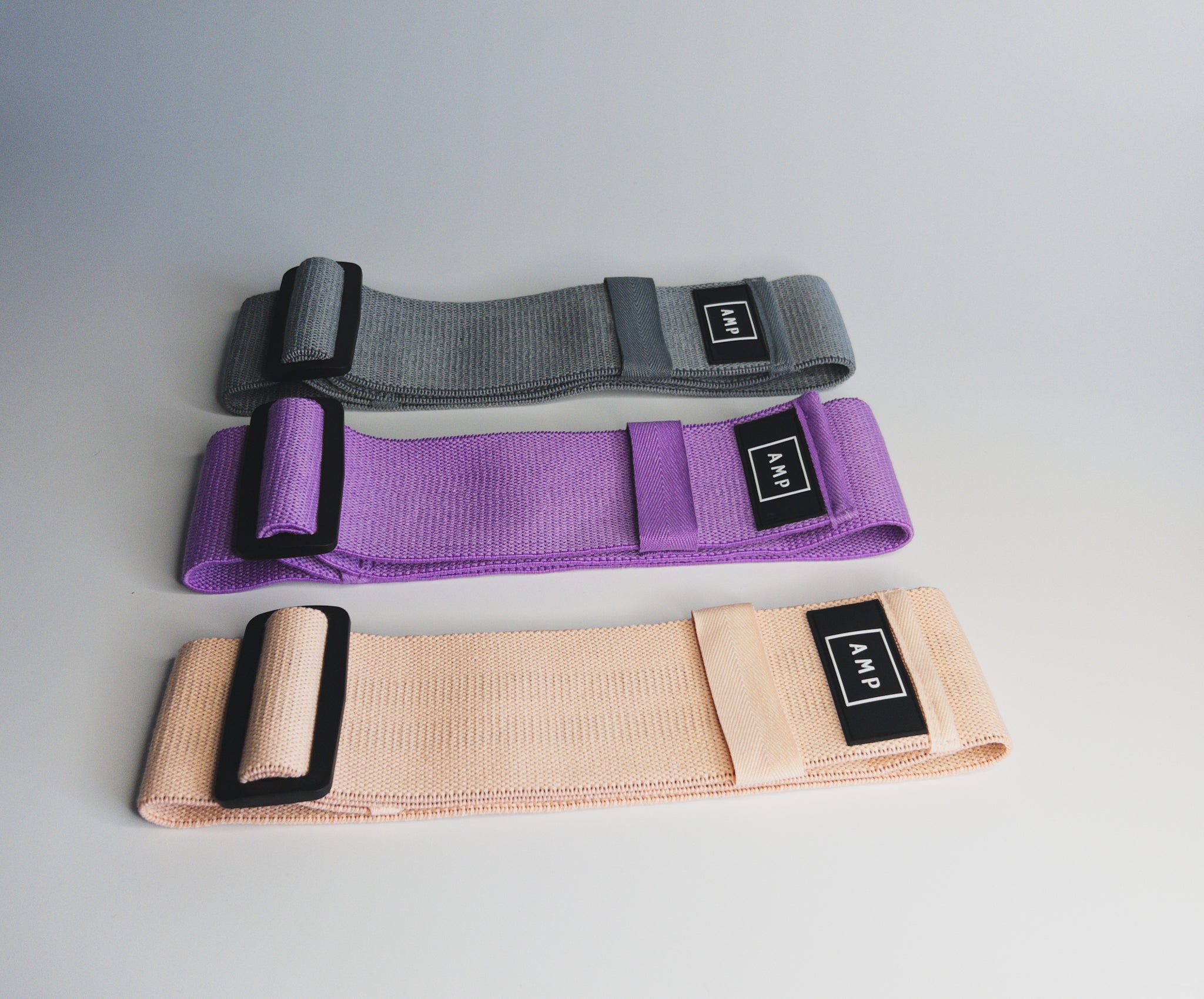 Adjustable fabric resistance bands set of three, light, medium and heavy .