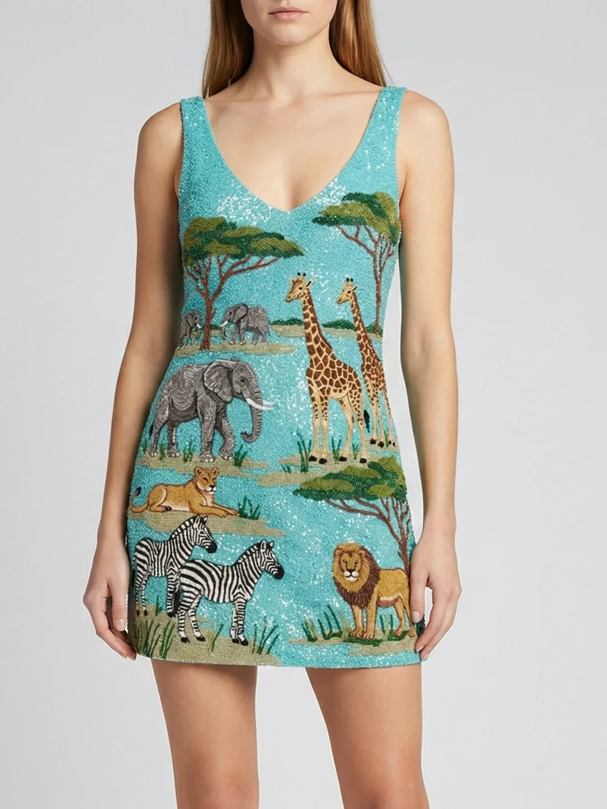 Inspired by the rich textures and warm palettes of the African landscape, this beaded mini dress combines hand-embellished craftsmanship with contemporary silhouette. Intricate beadwork adorns the bodice and hem, creating dimensional detail that catches light beautifully. Perfect for resort wear, evening occasions, or editorial styling. The structured fit flatters while the mini length offers effortless elegance for warm-weather dressing.