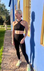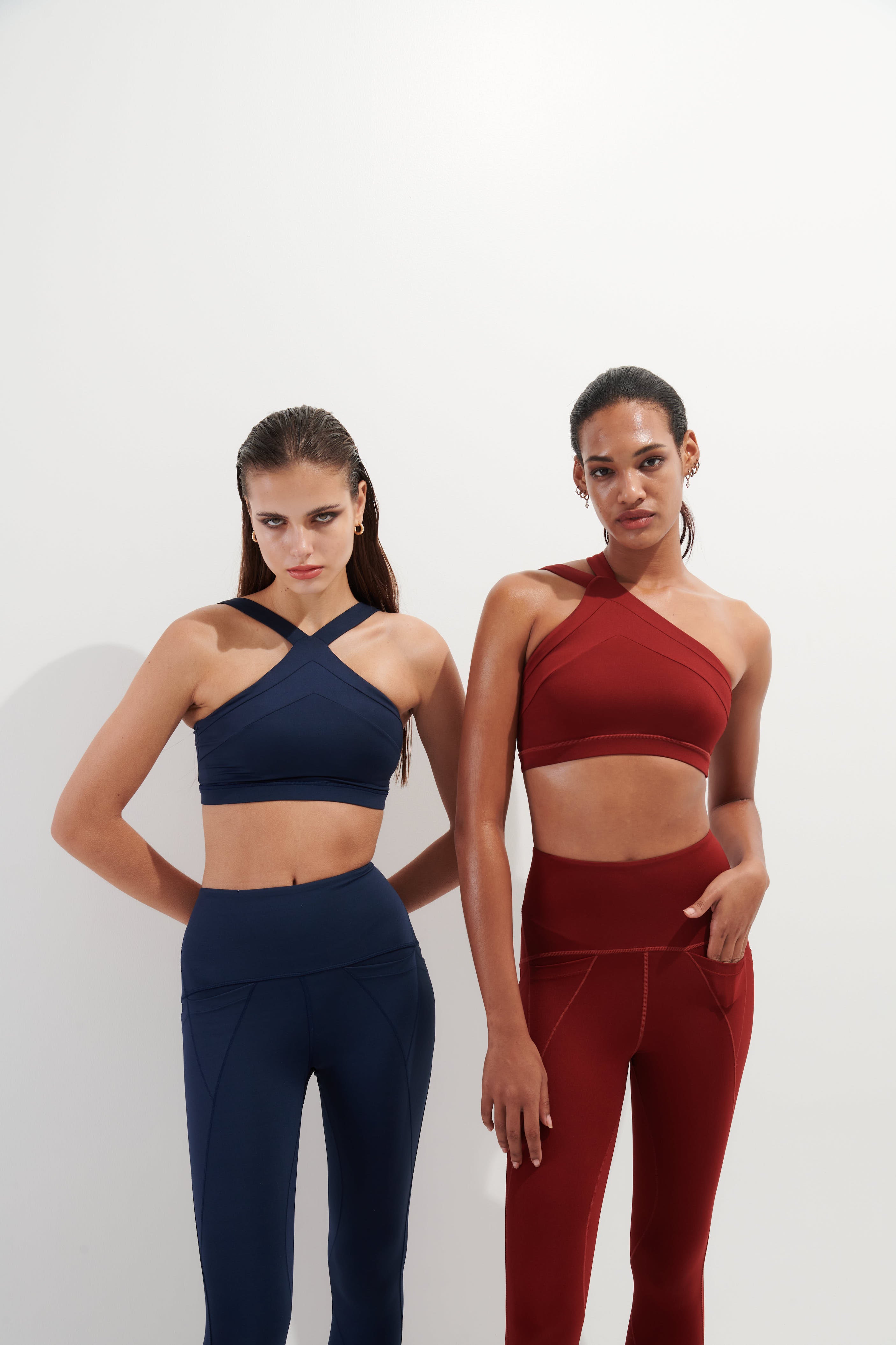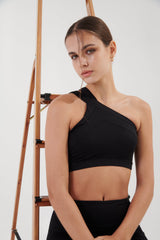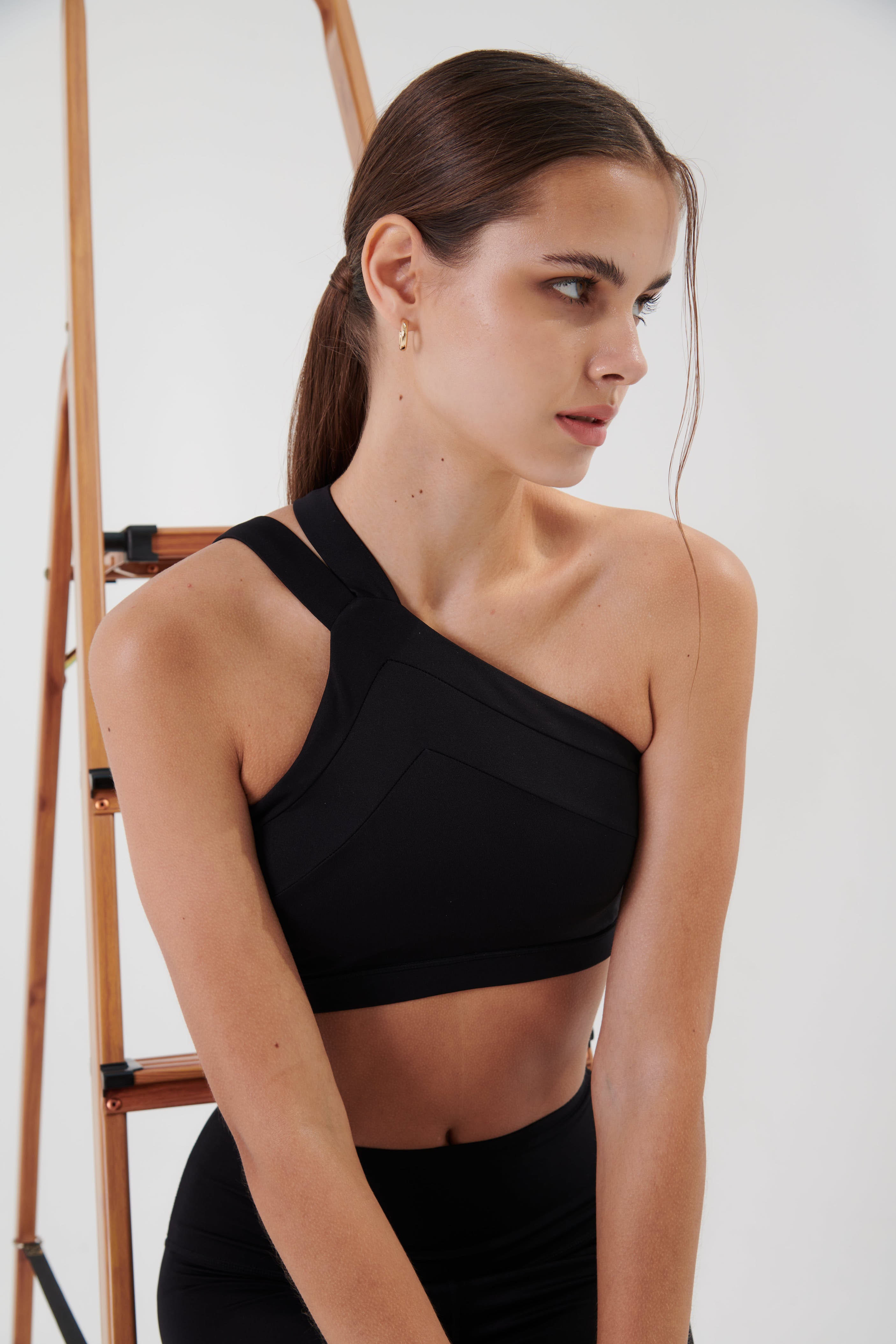 1 bra transforms into 2 different styles. From a functional V halter neck to an elegant one shoulder, this is the bra that can be worn both ways! This outfit never gets boring at the gym or beyond.