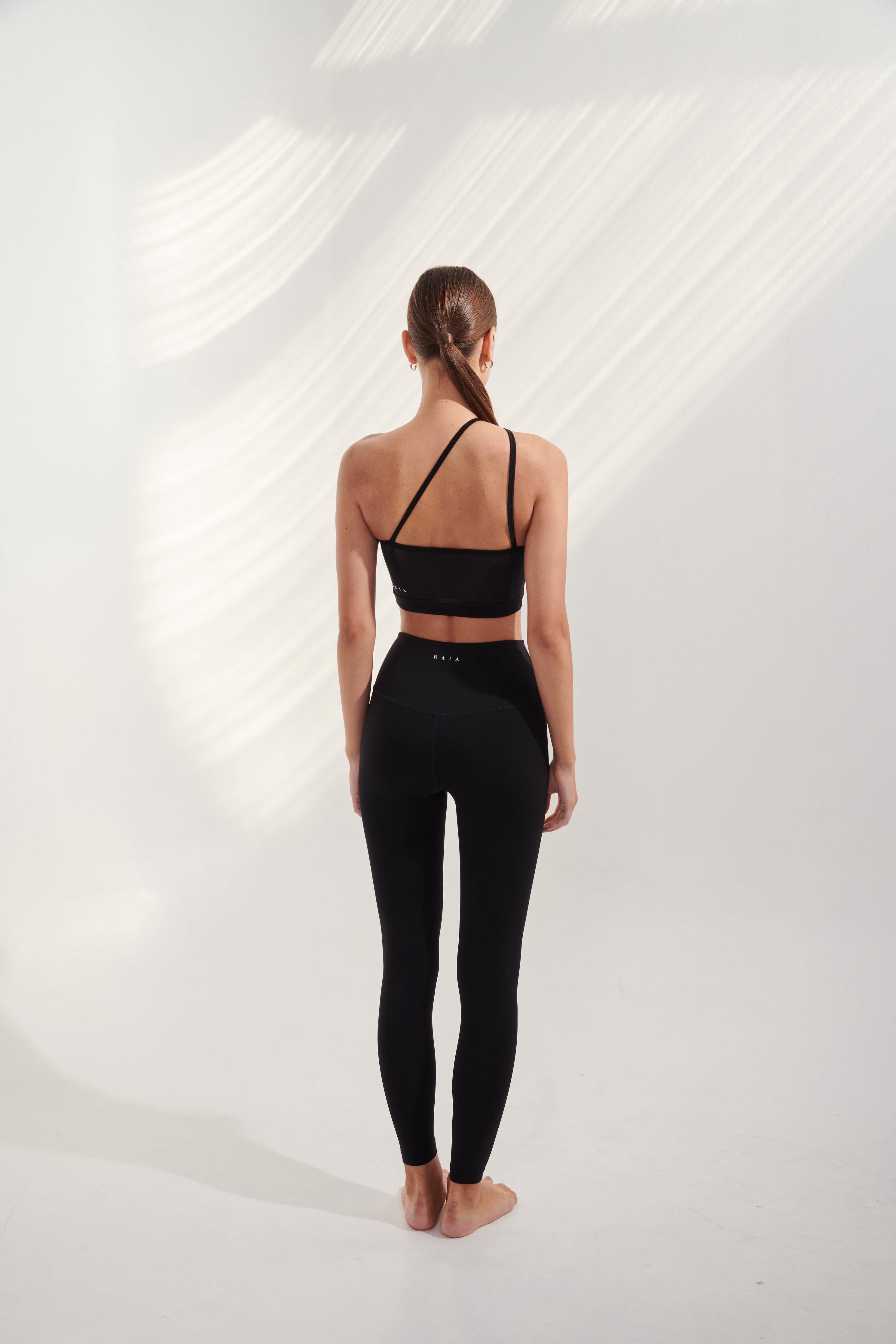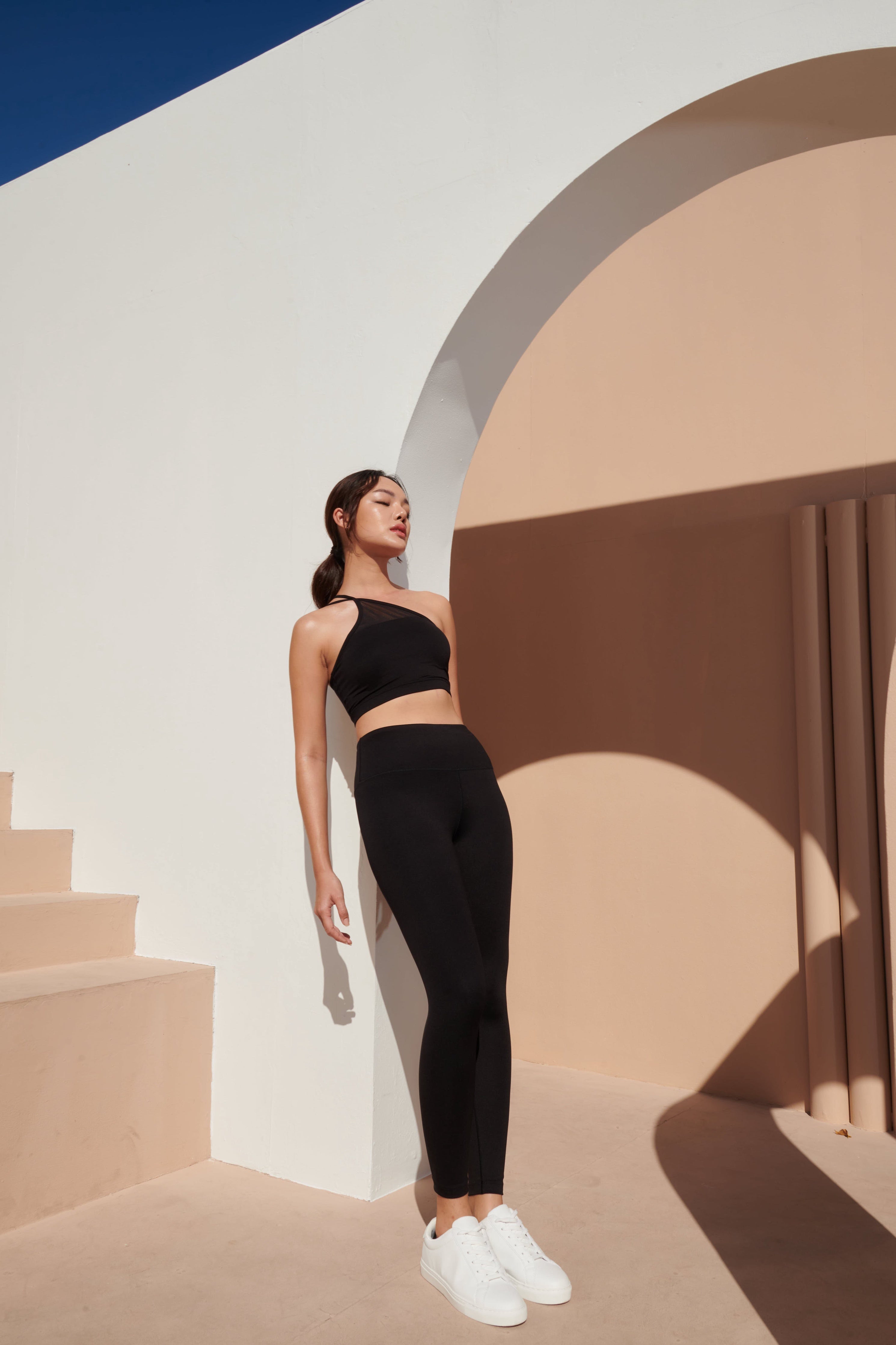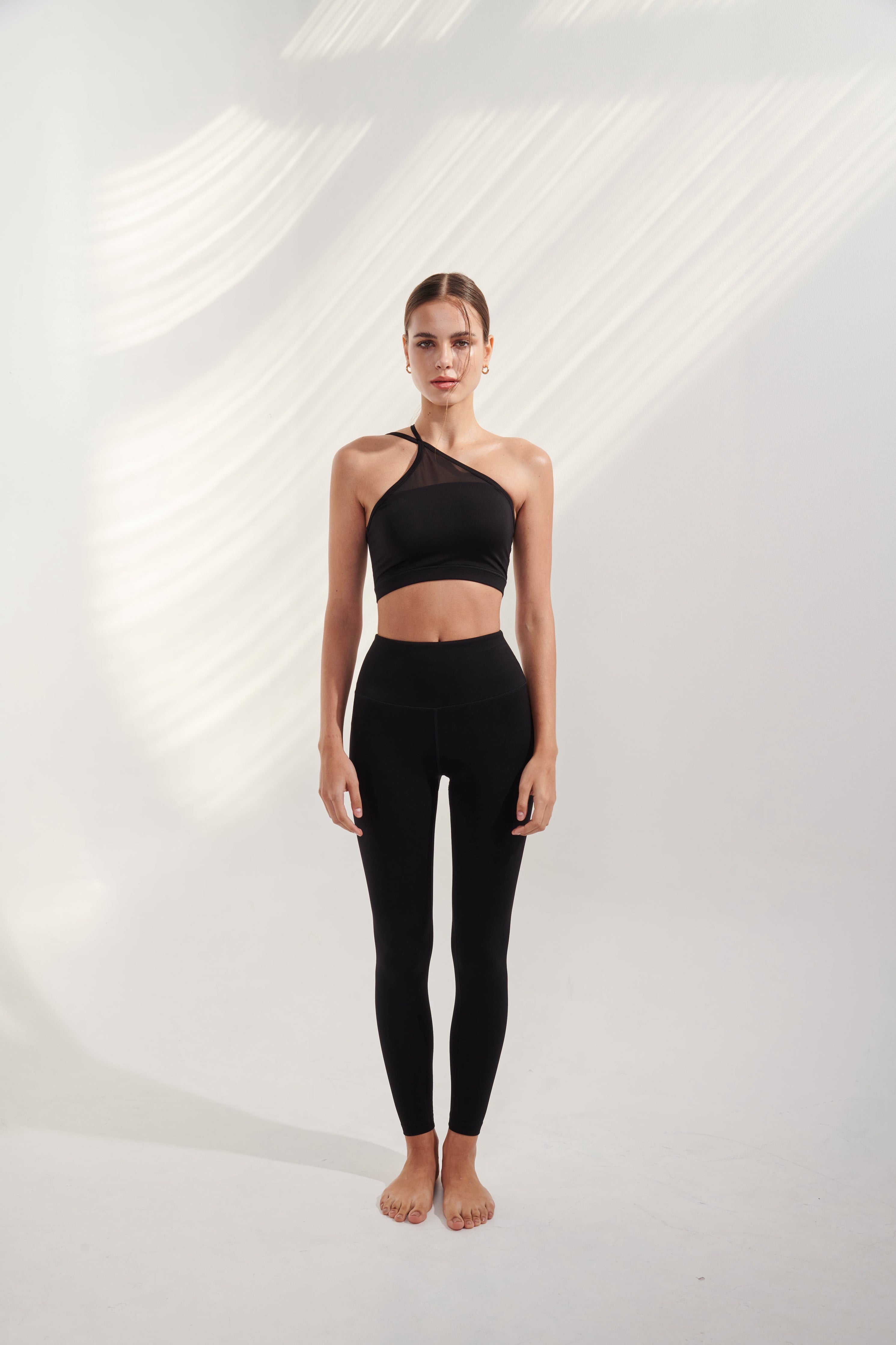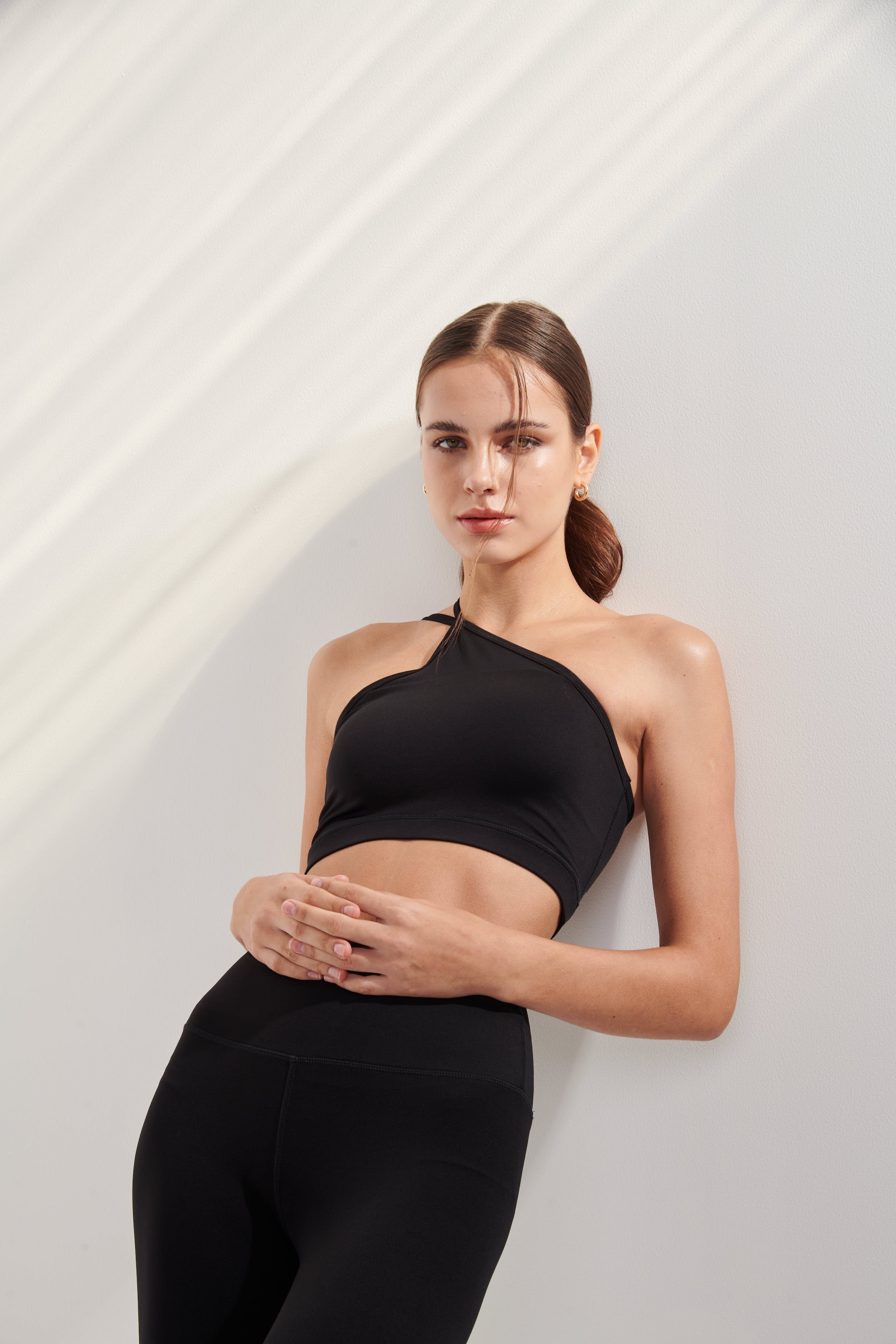 1 bra transforms into 2 different styles. From a functional V halter neck to an elegant one shoulder, this is the bra that can be worn both ways! This outfit never gets boring at the gym or beyond.