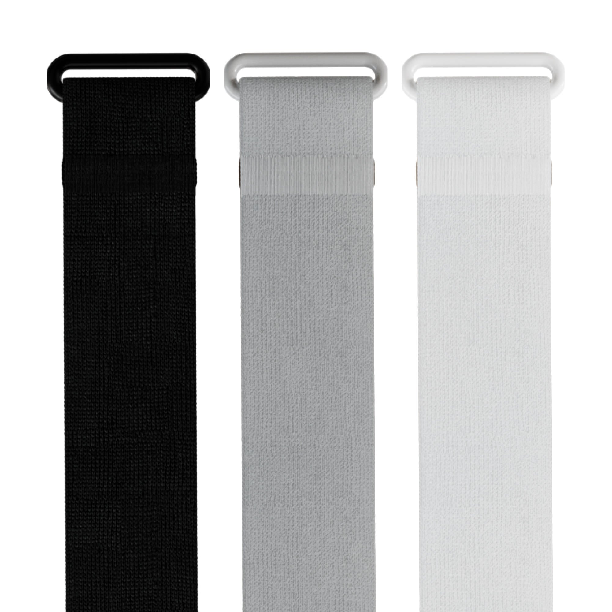 Apollo Bands ensure a comfortable fit throughout every movement, are built to last, and cleaning is a breeze! Perfect for use with the Apollo device when worn on the wrist or ankle. This 3-pack contains a black, white, and grey band.