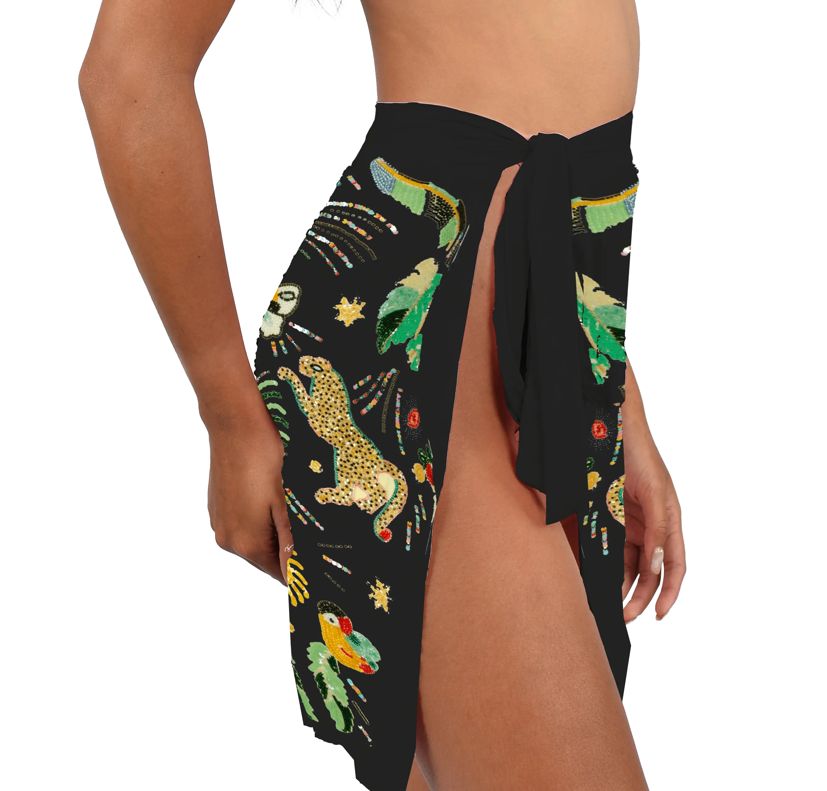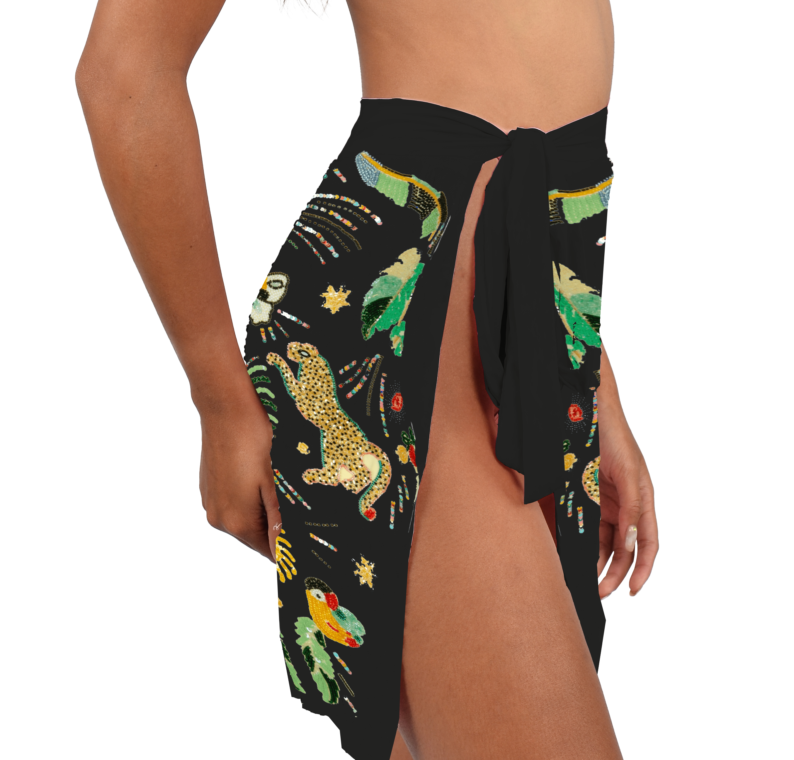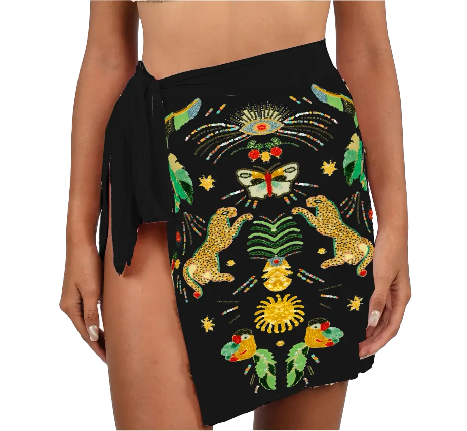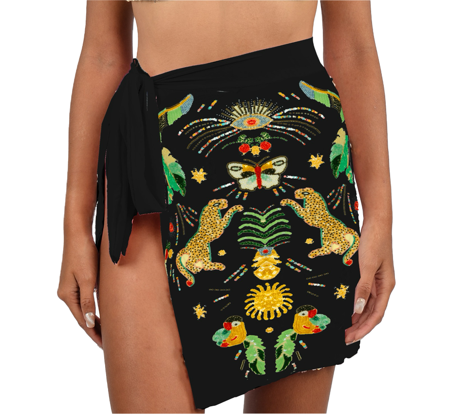 The Aurelia Mini Skirt is inspired by our founder's new home in the tropics, Aurelia features hand-embroidered tropical elements on an eco-friendly nylon base. This mini Skirt is the perfect addition to your summer wardrobe.