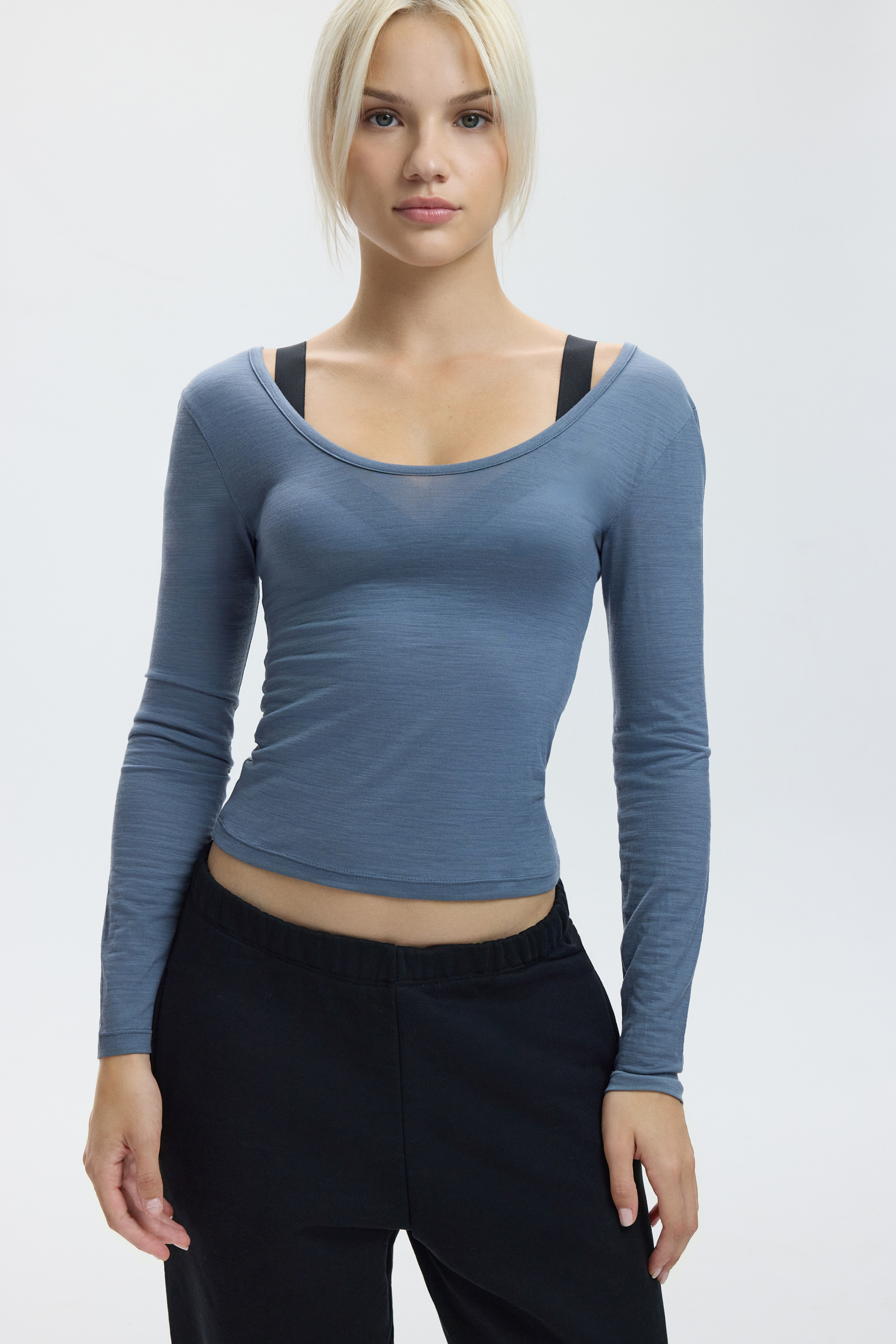 Offered in a soft blue tone for understated elegance, this piece brings together breathable comfort and sophisticated simplicity throughout the day. Wear it as a layering essential on colder days or on its own during seasonal transitions—natural and timeless in every form.