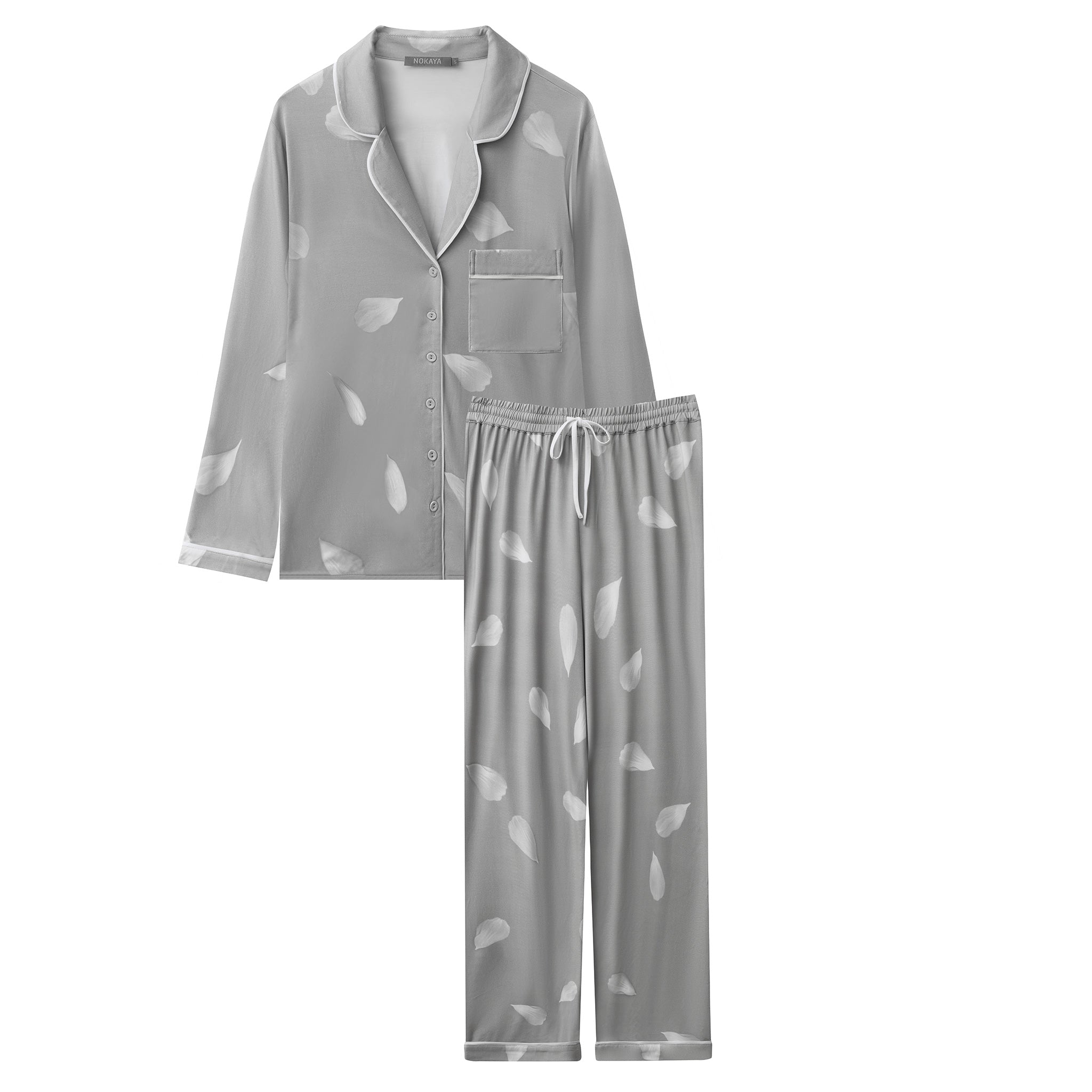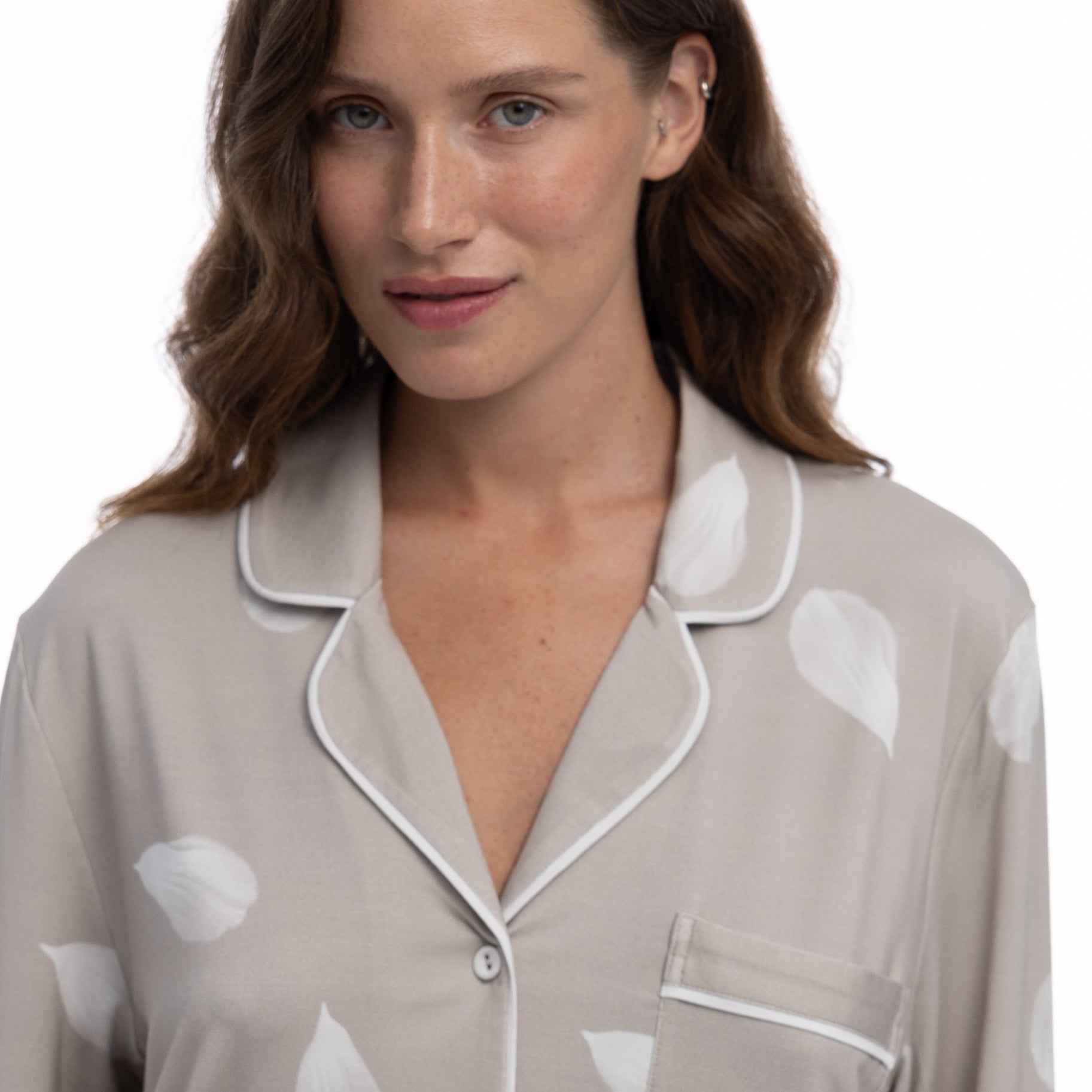 Elegance meets ease in the Classy Morning Long Pyjama Set. Made from ultra-soft bamboo, the set features a long-sleeved shirt with covered buttons and piping, as well as relaxed, full-length trousers with a drawstring waist. Naturally breathable and wrinkle-resistant, it’s ideal from morning to night.