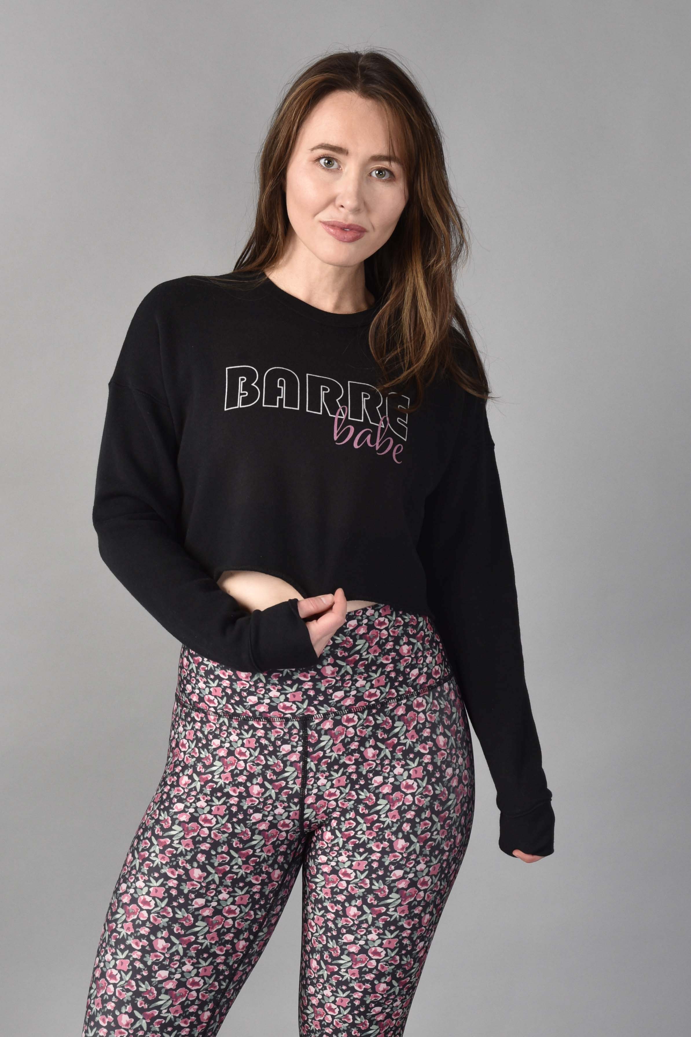 Are you a Barre Babe? This crop sweatshirt is perfect for your barre workout or to throw on for the drinks after. Super soft airlume combed and ring-spun cotton with brushed fleece inside with crop length that just perfectly suits your high waist yoga pants.