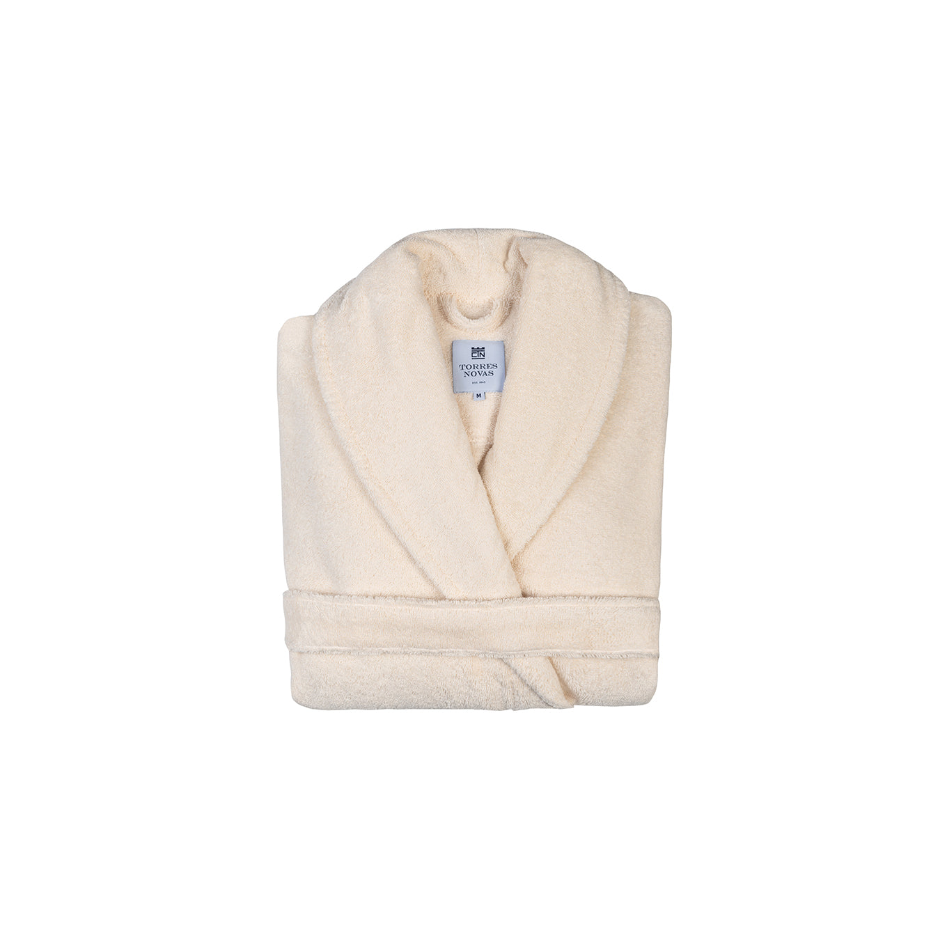 The Torres Novas bathrobes were designed as the ideal complement for days spent at home with the family or for moments of relaxation and well-being, either to dry off after bathing or just for lounging. The terrycloth bathrobes are available in six unisex sizes - from XS to XXL - and in five colour options - white, natural, beige, light grey, dark grey, and old pink.