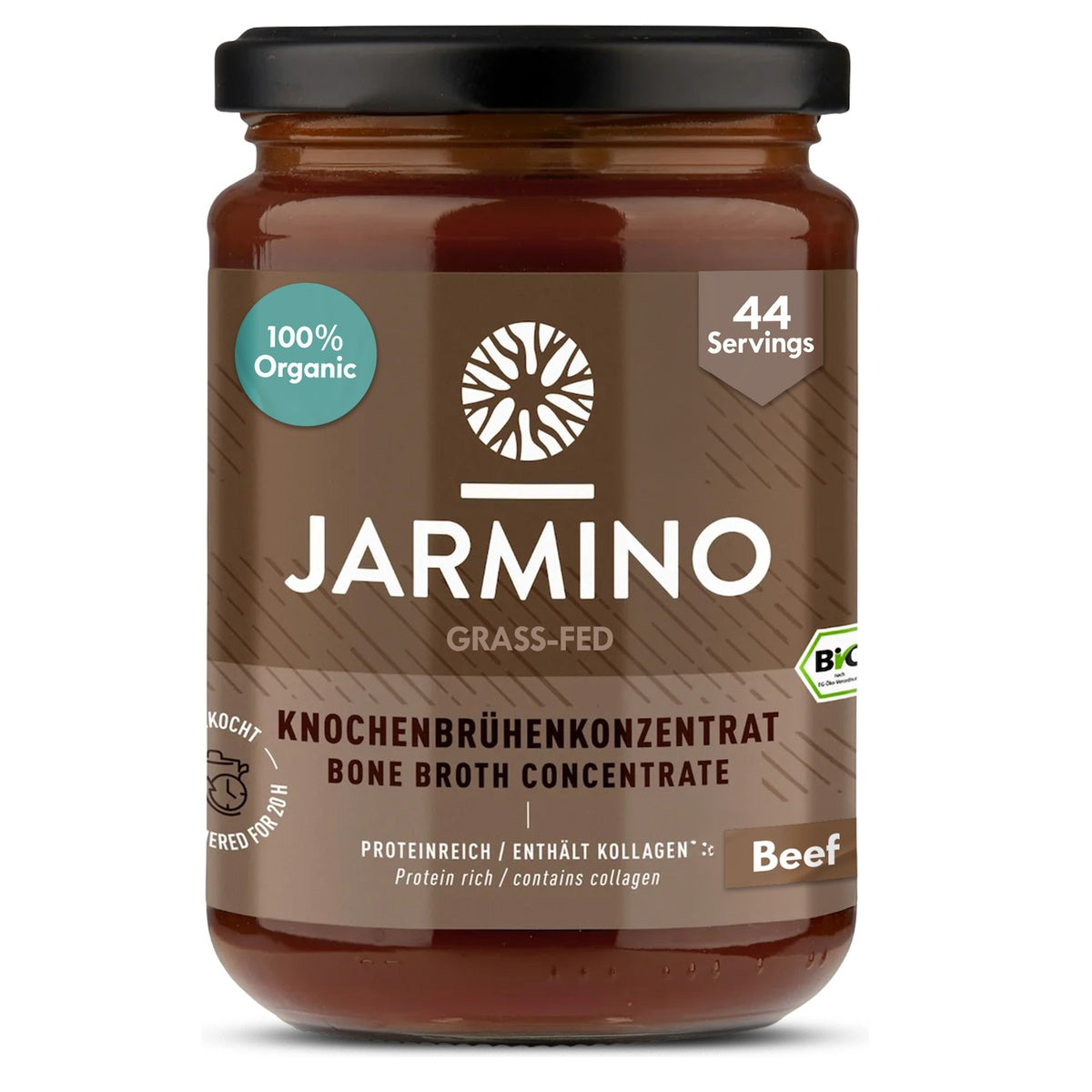 Our organic bone broth concentrate from 100% grass-fed beef cattle is ideal for anyone who wants to provide their body with minerals and nutrients such as collagen, protein and amino acids from real bone broth on a daily basis. One jar contains 44 servings. Our beef bone broth concentrate is made from just three ingredients: Organic pasture-raised beef bones, water and rock salt. The concentrate is therefore free from all allergens and is also suitable for an autoimmune protocol. Quality features: