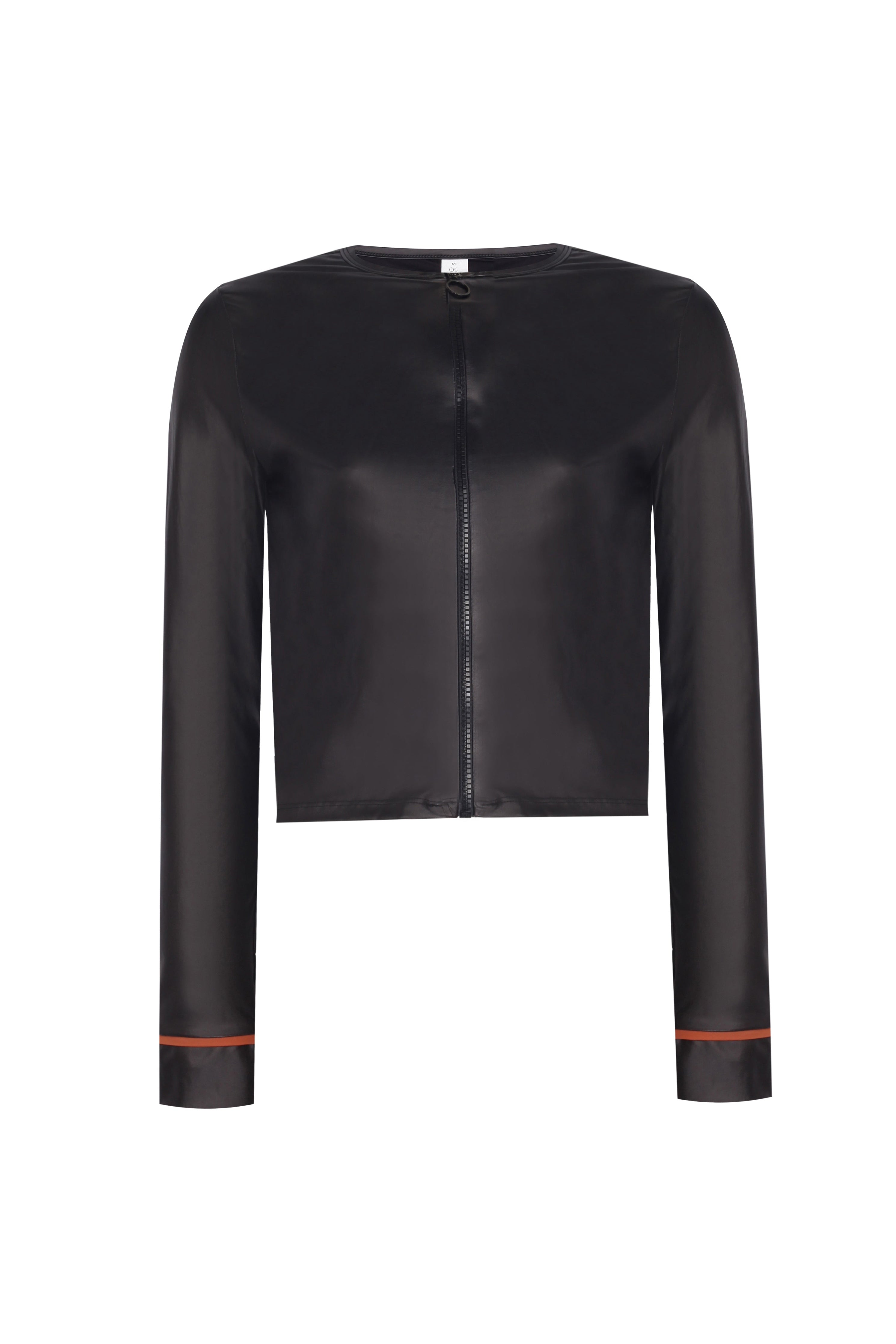 Our leather effect and wet look surf jacket has a front zipper. If you wish, you can easily choose paddle, kite or wind surfing in the heat of July and August. When you close the zipper, it does not fit snugly to the body, it is slightly loose and does not make you feel tight.