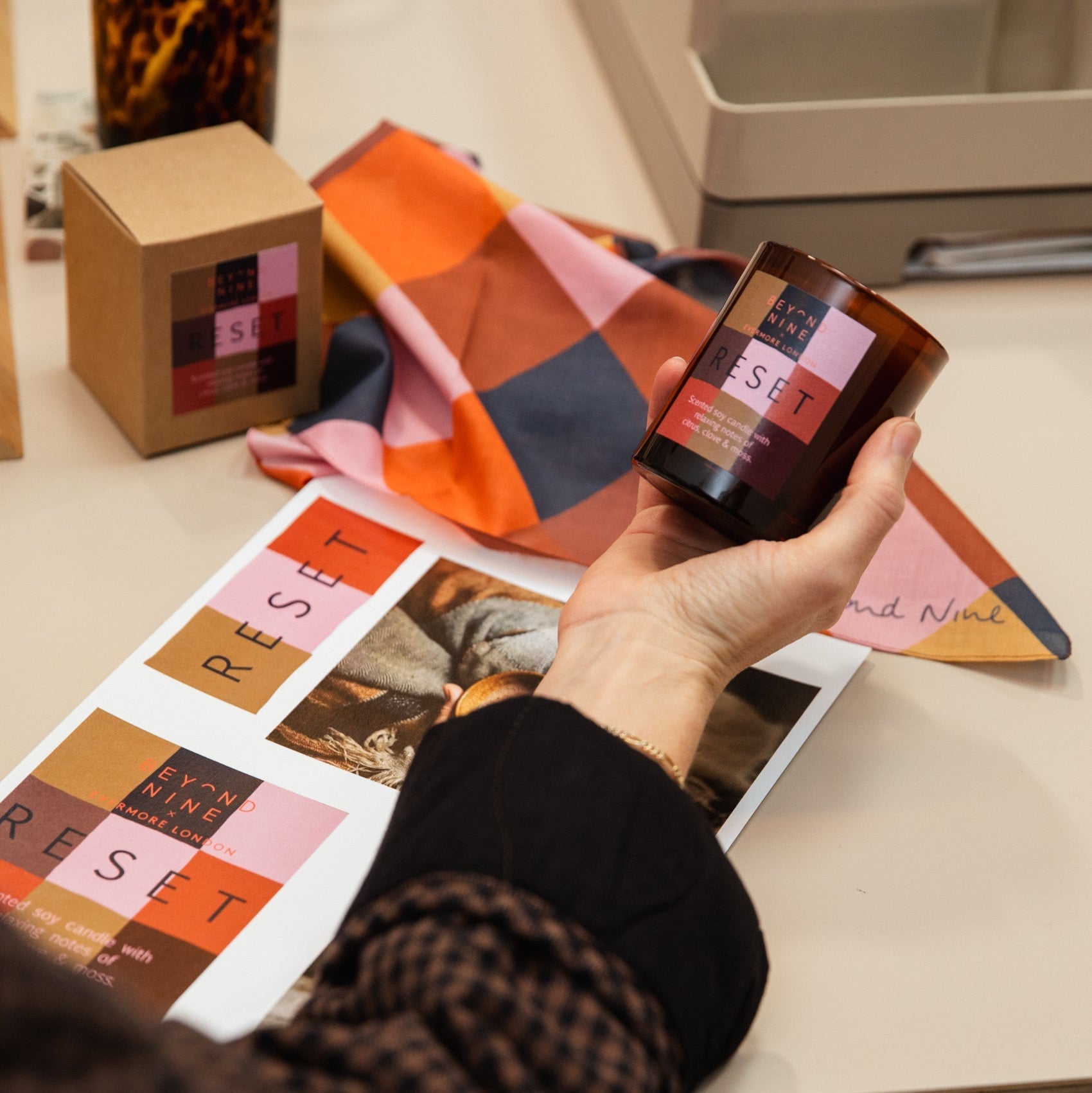 Meet the Reset Candle – Created in collaboration with Beyond Nine, Reset is an invitation to pause. Limited edition and crafted in small batches, this soy candle layers bright citrus with warming clove and earthy moss — a scent designed to ground the senses and bring calm to the quiet in-between.