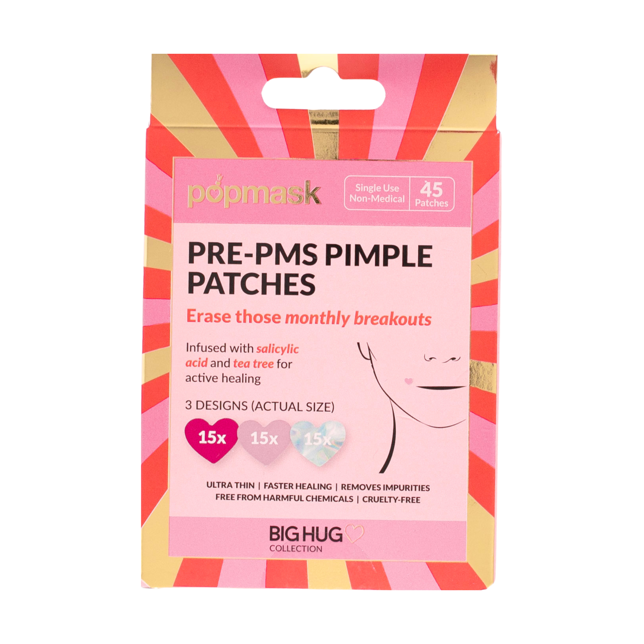 Pre-PMS breakouts are the worst — but you don't have to suffer through them. Big Hug Breakout Pimple Patches are your first line of defense against pimples, blemishes, and unwanted flare-ups. Each hydrocolloid dot is infused with tea tree oil and salicylic acid to extract impurities, calm irritation, and flatten spots fast. Just stick one on and let it work its magic — no picking or no scarring, just clearer, calmer skin.