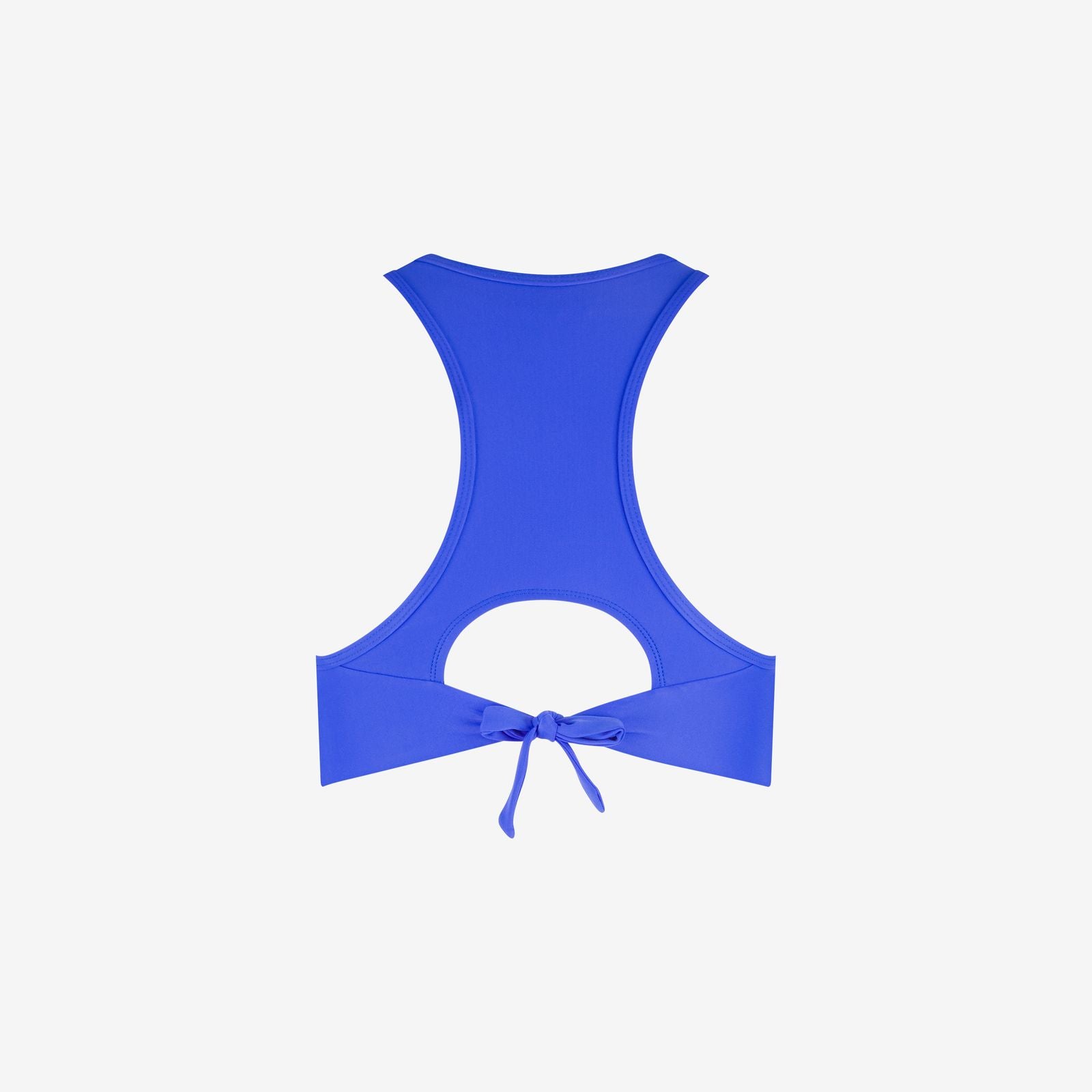 Built for performance, this sports bikini top features a streamlined high neckline and secure tie-back for a custom fit. Made from chlorine resistant swimwear fabric, it’s a bold and breathable essential for everything from lap swims to surf sessions.