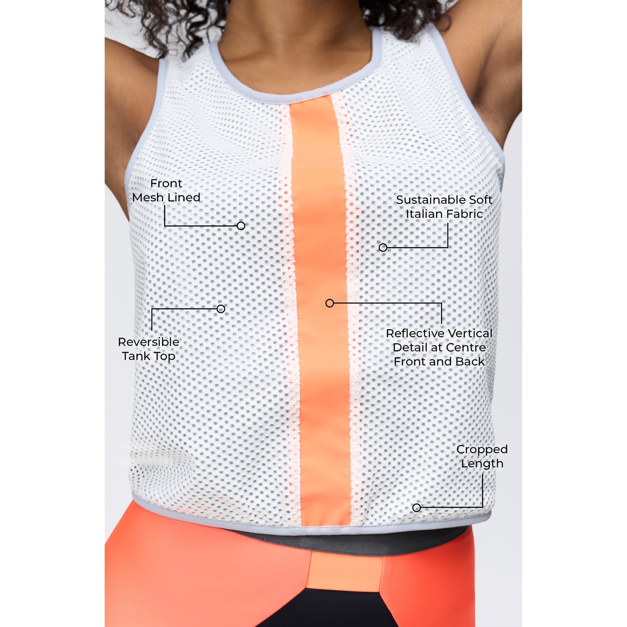 A lightweight active tank, the Bilpin Top features a modern cropped silhouette. Recycled mesh fabric offers effortless breathability at every pace. A reflective vertical stripe at centre front and back provides timeless style and supports safety during low-light training. Run, jog, walk and lift, the Bilpin top is designed for comfort and ease of wear.