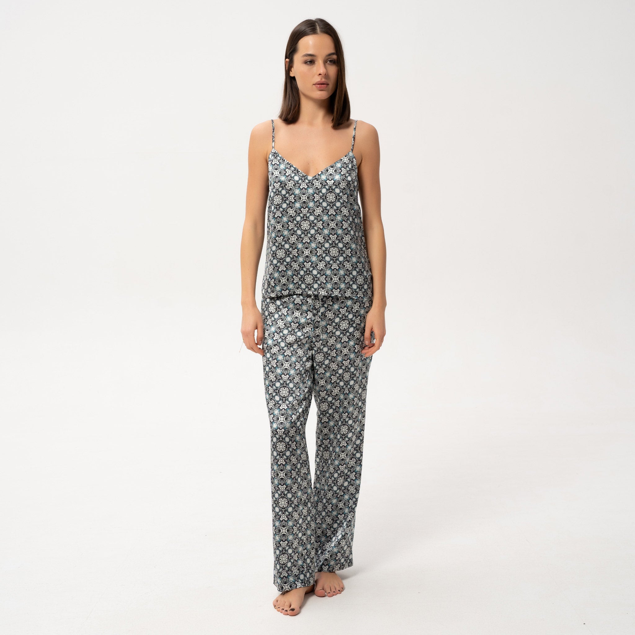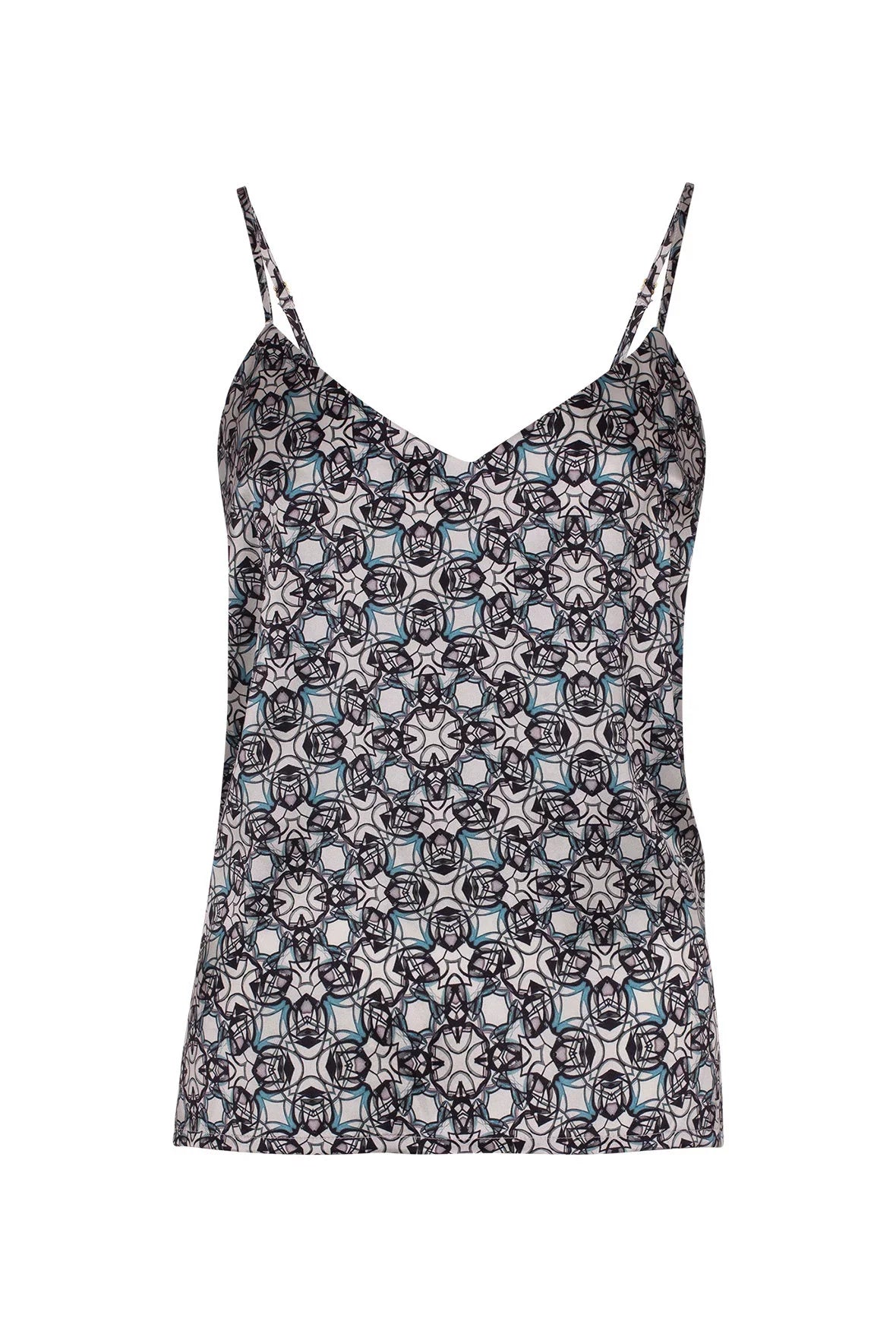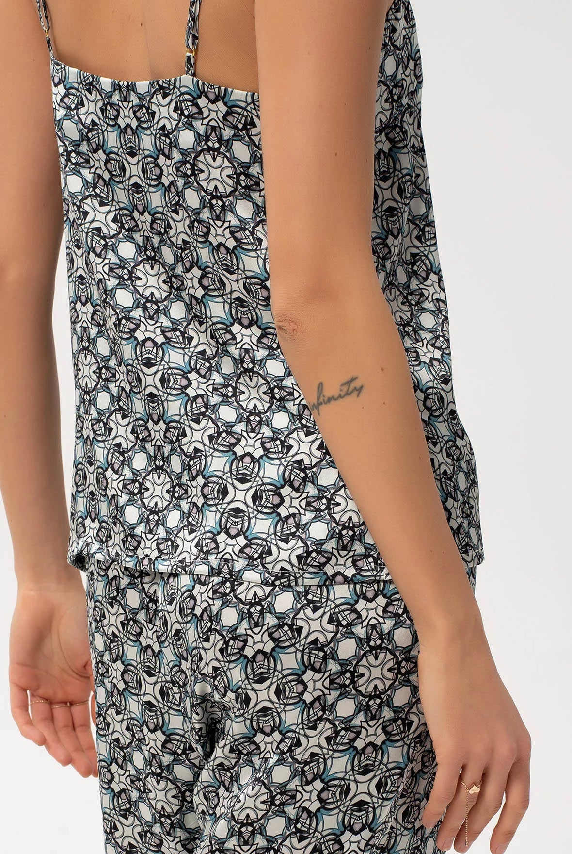 The Neo Geo Silk Camisole is crafted from premium 100% washable Mulberry Silk and features thin, adjustable straps for a customized fit, offering ultimate comfort and durability for long-lasting wear.