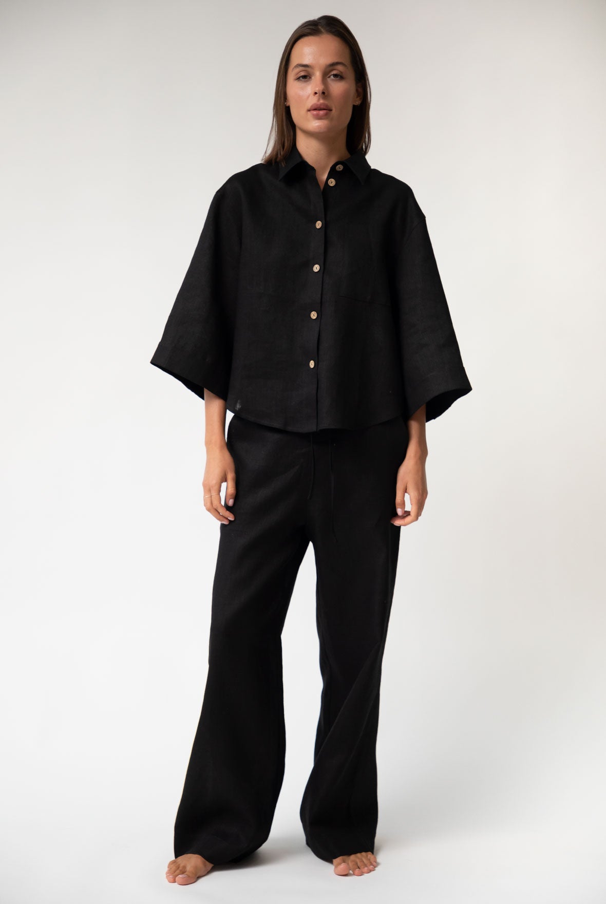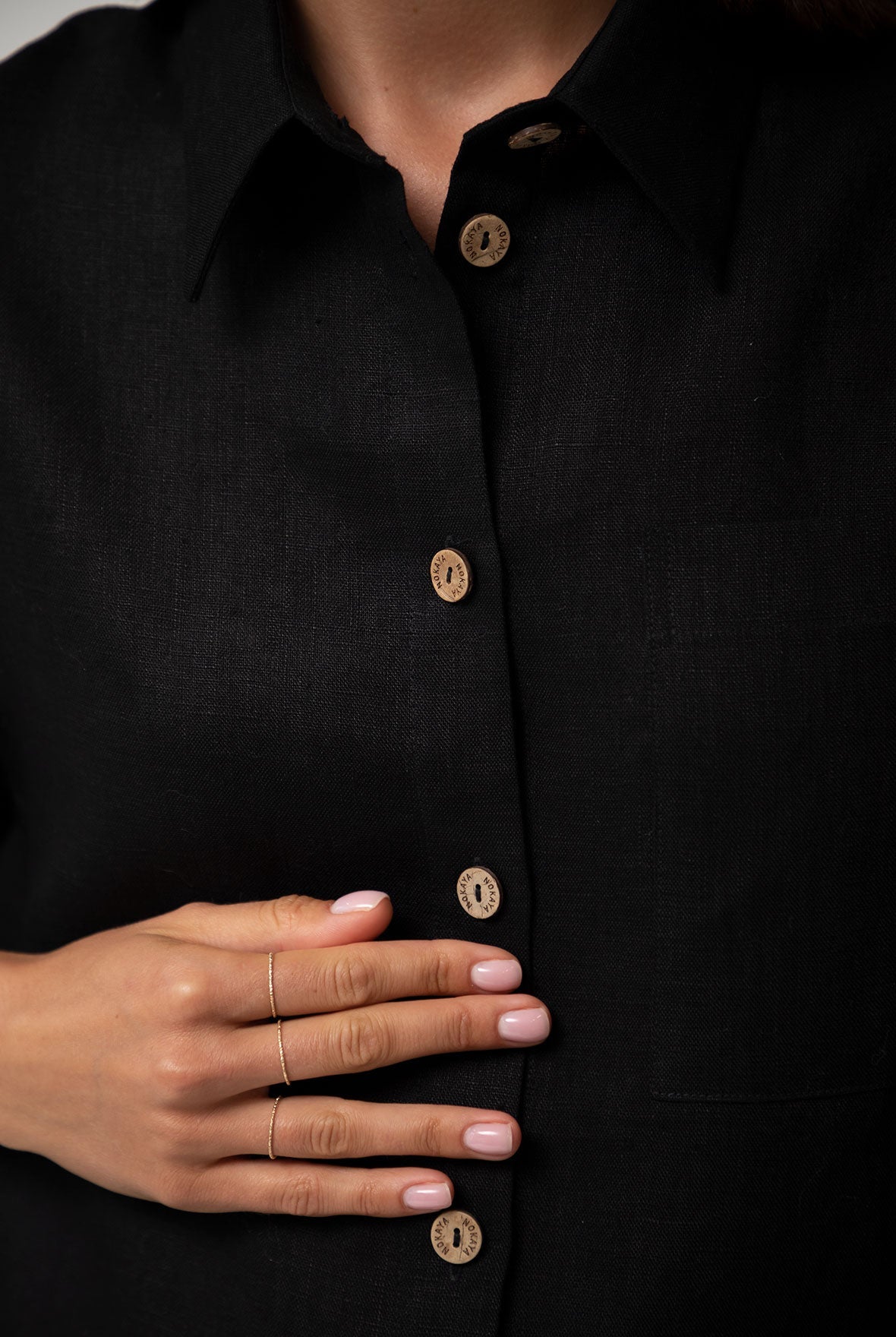 The Perfect Days Heavy Linen Shirt is designed from high-quality, 100% heavy linen, which holds its shape while providing breathability. It features a relaxed straight cut, a neat collar, and a button-down front with coconut buttons for a distinctive finish. This shirt can be worn with or without a belt, offering versatility in styling.