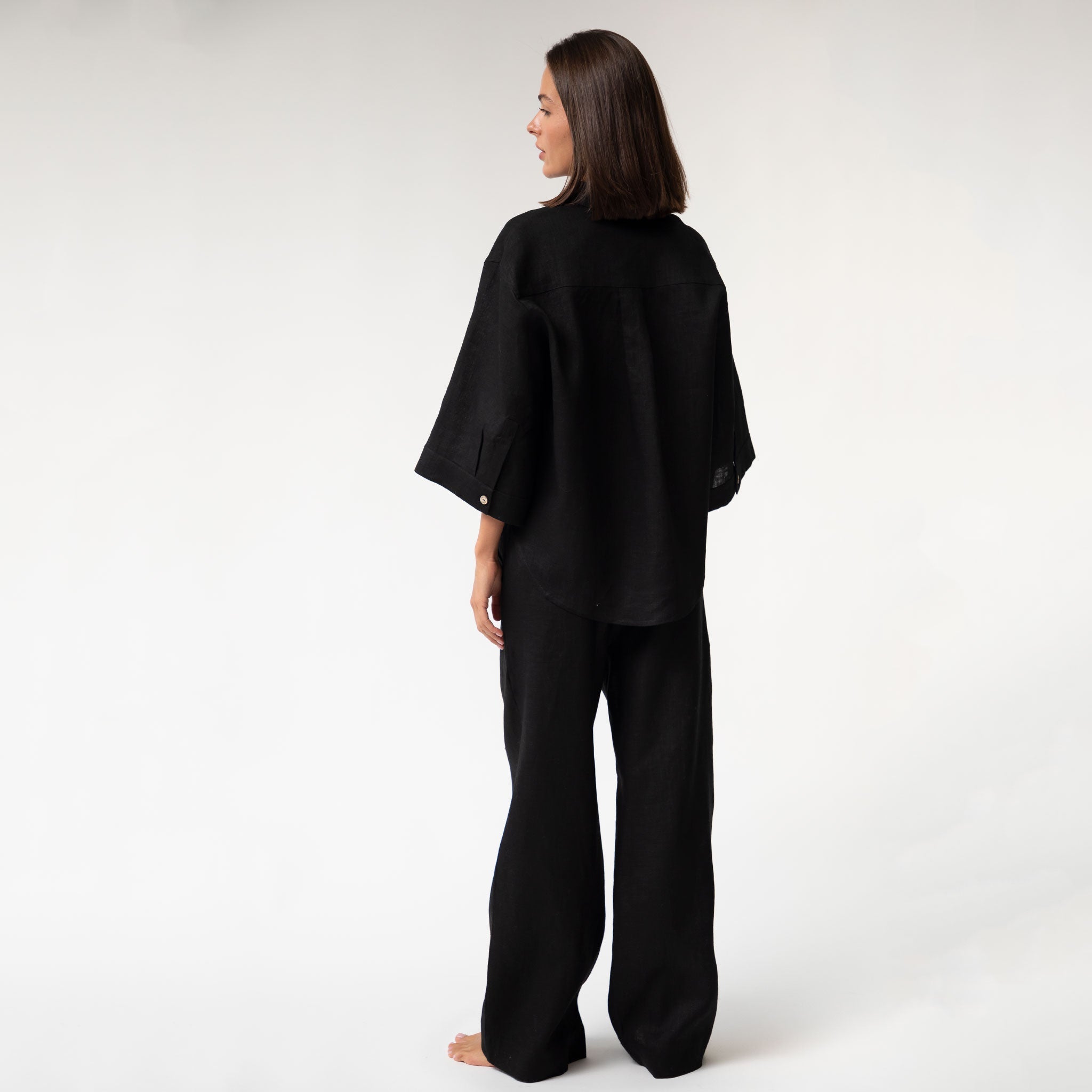 Style Tip: Combine with a matching black heavy linen shirt for a sophisticated monochrome outfit, or add a colorful top for a casual yet stylish look.