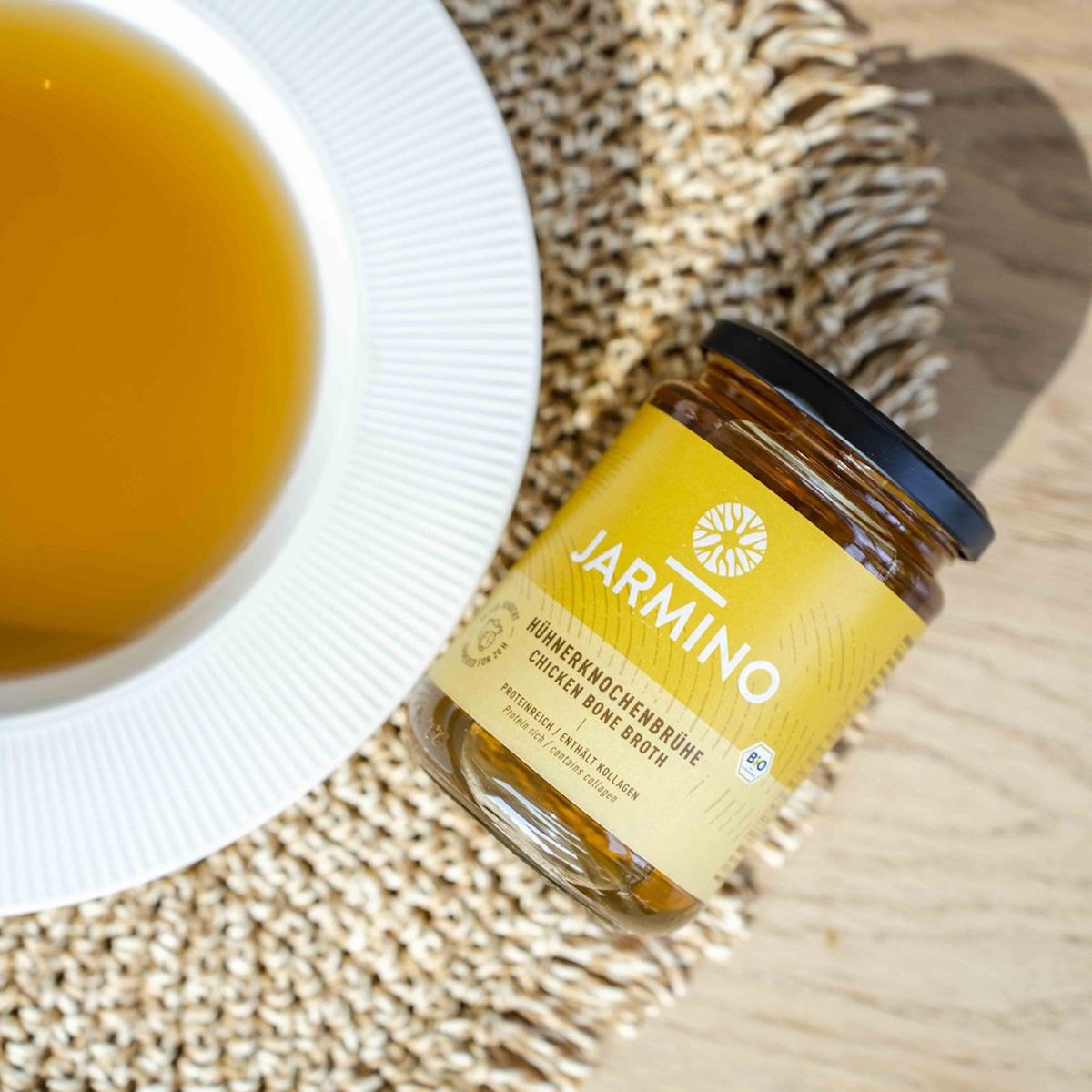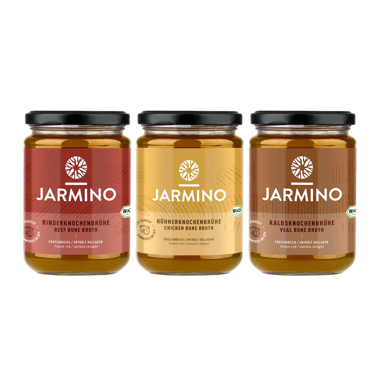 Where is the production and where do the ingredients for the broths come from? Our broths are produced in our manufactory in Bavaria. Our suppliers come from the region (Bavaria and Tyrol) and have been carefully selected by us. All of them practice organic and sustainable farming. Medicines and antibiotics are taboo, and the animals live on pasture for up to 300 days a year. Many farms are self-sufficient and also grow their own feed for the animals. Are the broths free of heavy metals (e.g. lead) and histamine? Yes, the broths are regularly tested in the laboratory and neither lead nor histamine could be detected. The broths are also free of gluten, lactose, arachidonic and various other fatty acids. What makes bone broth so special? It is the long cooking process over 20 hours. This releases the valuable nutrients and minerals from the bones and transfers them into the broth, making it a natural superfood. I case of any further questions, just send us an e-mail support@jarmino.co.uk. |