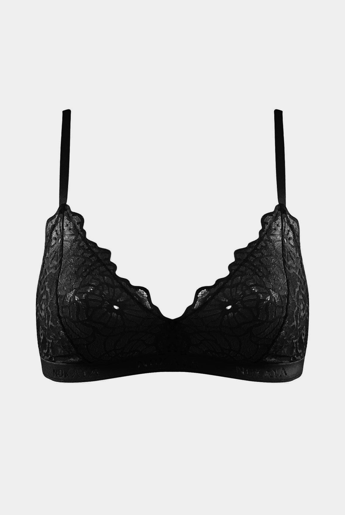 The wireless triangle bra in stretch lace might be revealed, teased under ready-to-wear, being an outwear or mix&matched, emphasizing the importance of feeling naturally effortless. Cryptic black is also practical and sensual.
