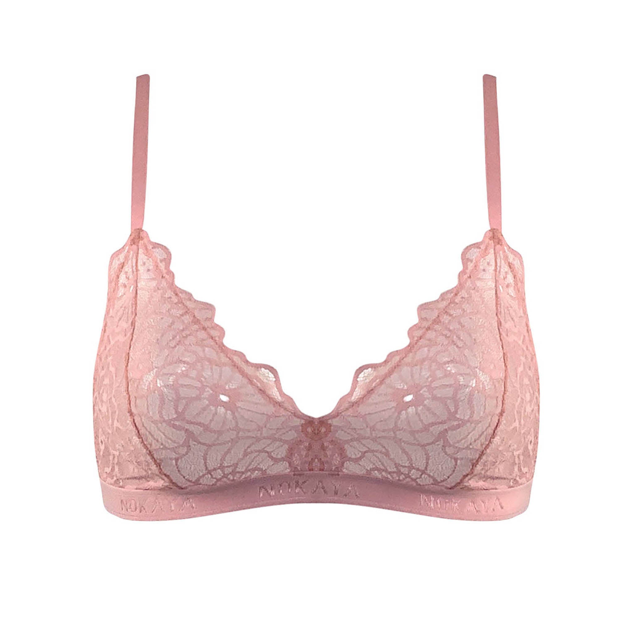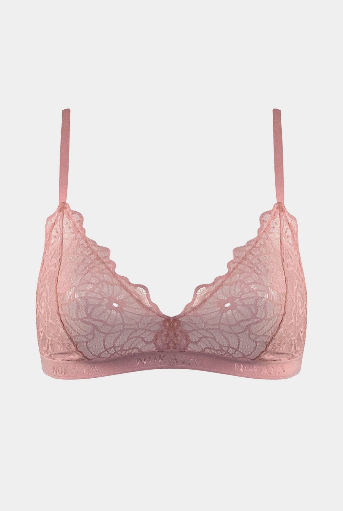 The wireless triangle bra in stretch lace might be revealed, teased under ready-to-wear, being an outwear or mix&matched, emphasizing the importance of feeling naturally effortless. A subtle bouquet has a very romantic fleur.