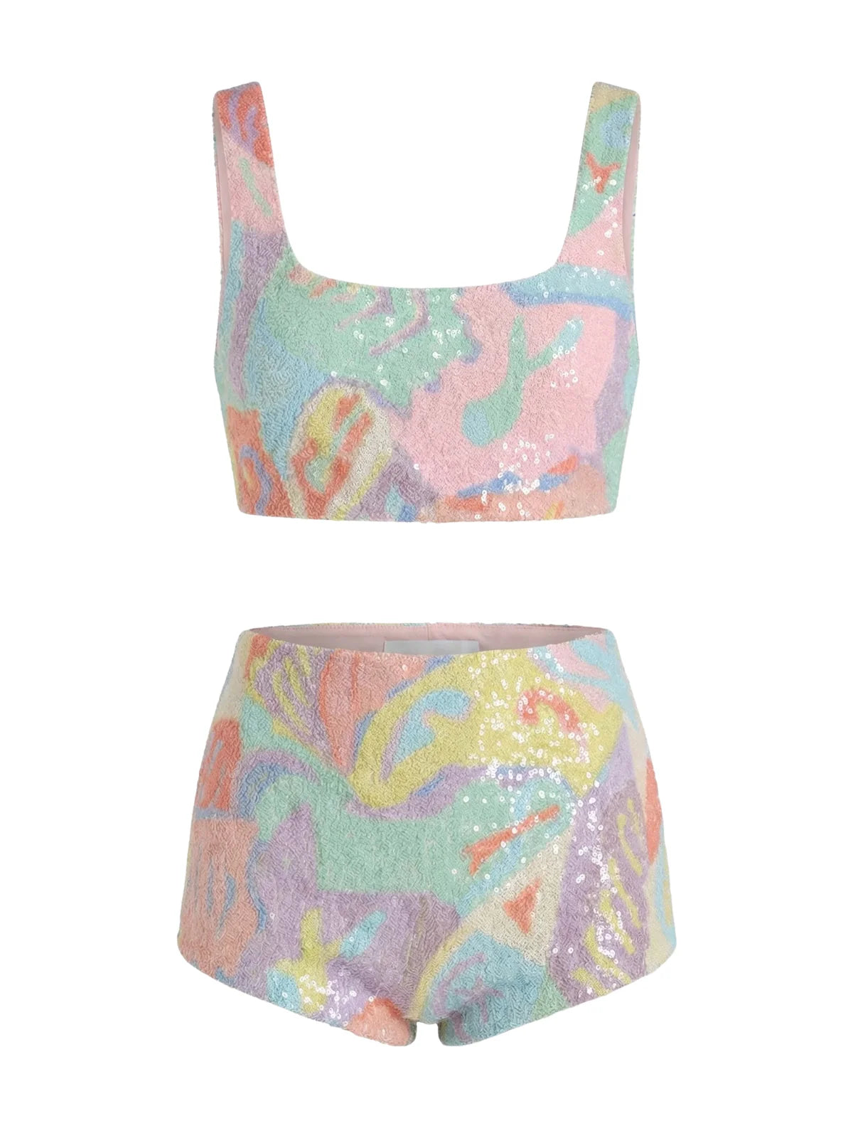 Lightweight and easy to wear, the shorts offer a comfortable fit that moves with the body, making them perfect for beachside strolls, daytime outings, and laid-back vacation styling. Pair with the matching crop top or style separately for a versatile, statement look that blends ease with Oceanus charm.