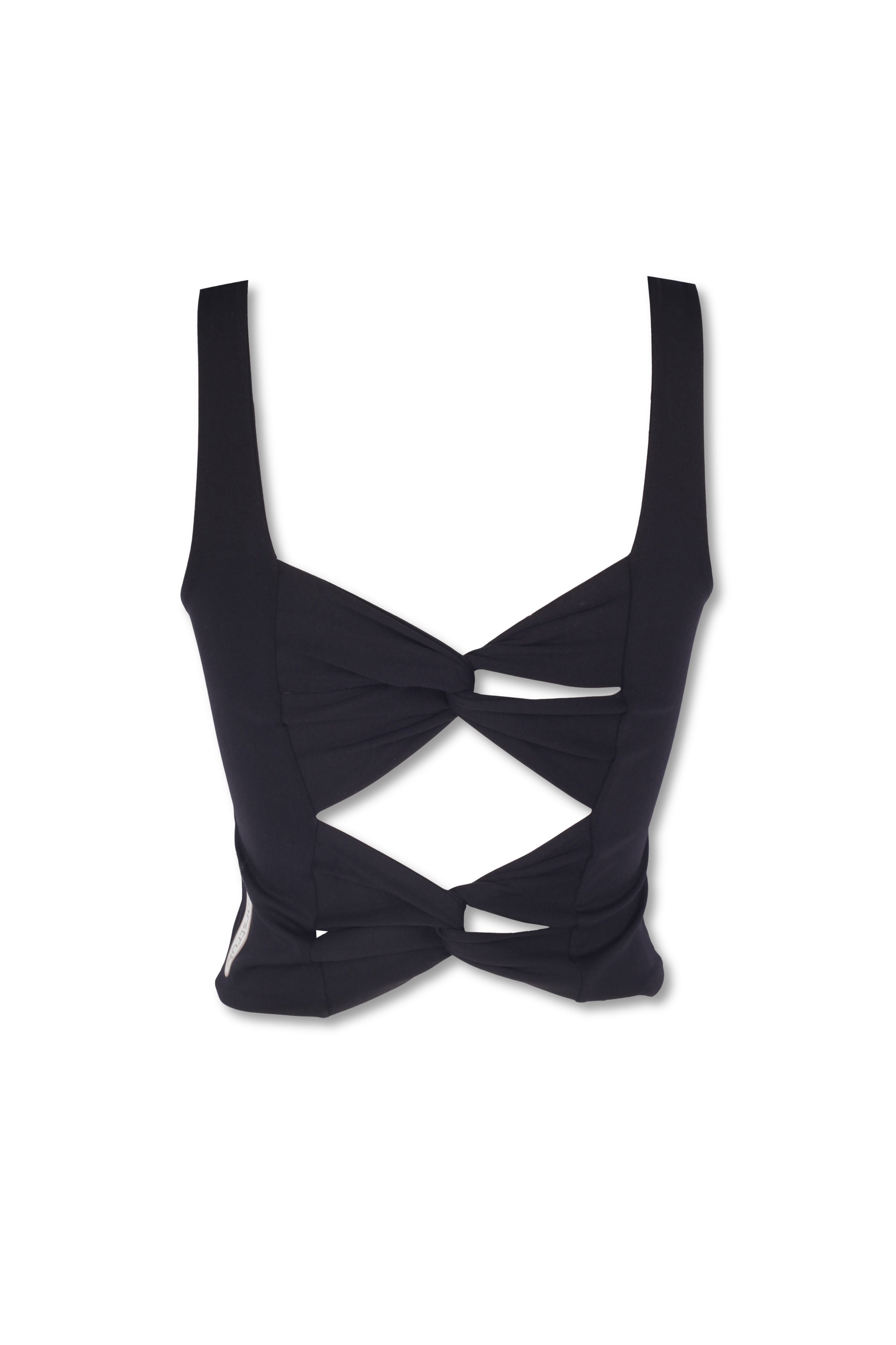 The bustier has a length that covers our belly and extends to the waist of the leggings.