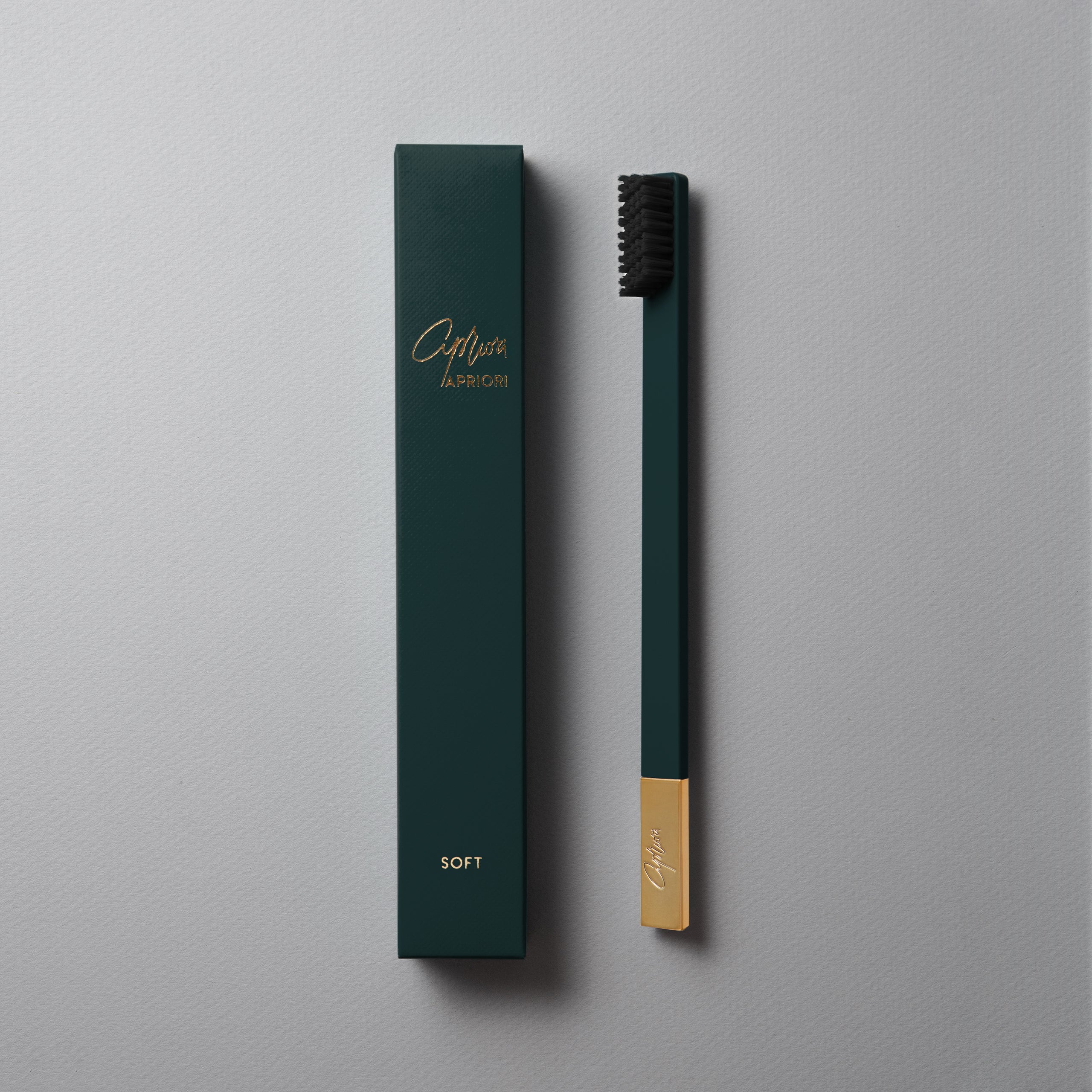 The Apriori® toothbrush, featuring its asymmetrical head shape and densely packed soft bristles made from innovative plant-based fibres, excels at its task. With it, oral hygiene becomes both effective and safe for enamel and gums, turning the routine of tooth brushing into a source of positive emotions.