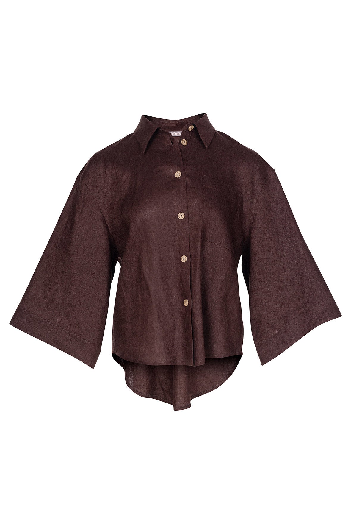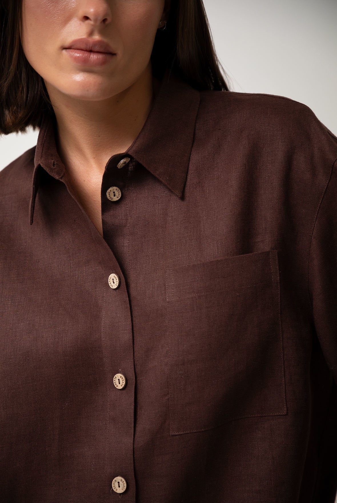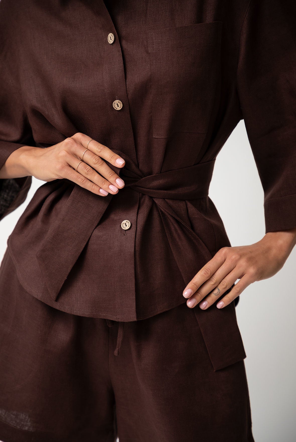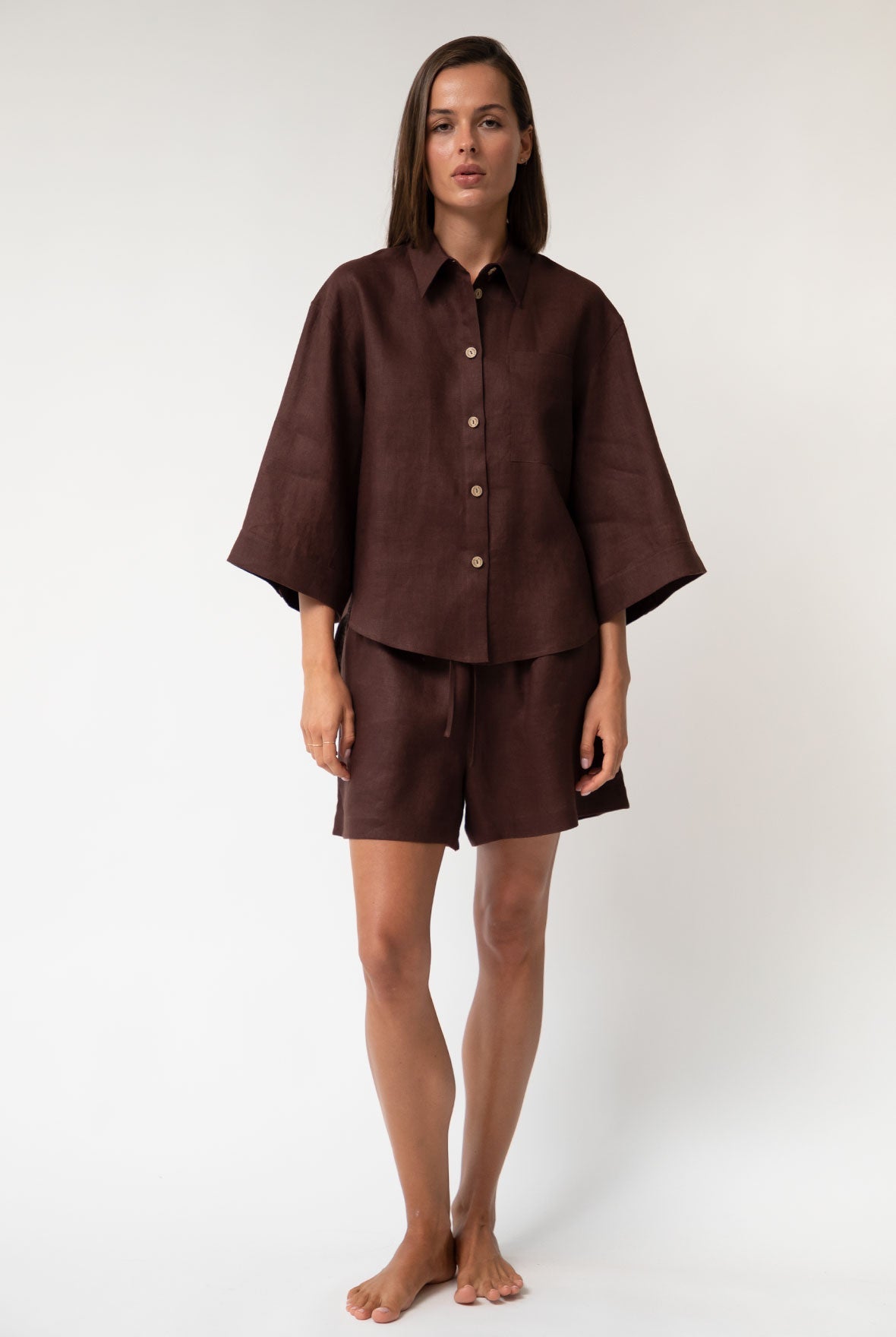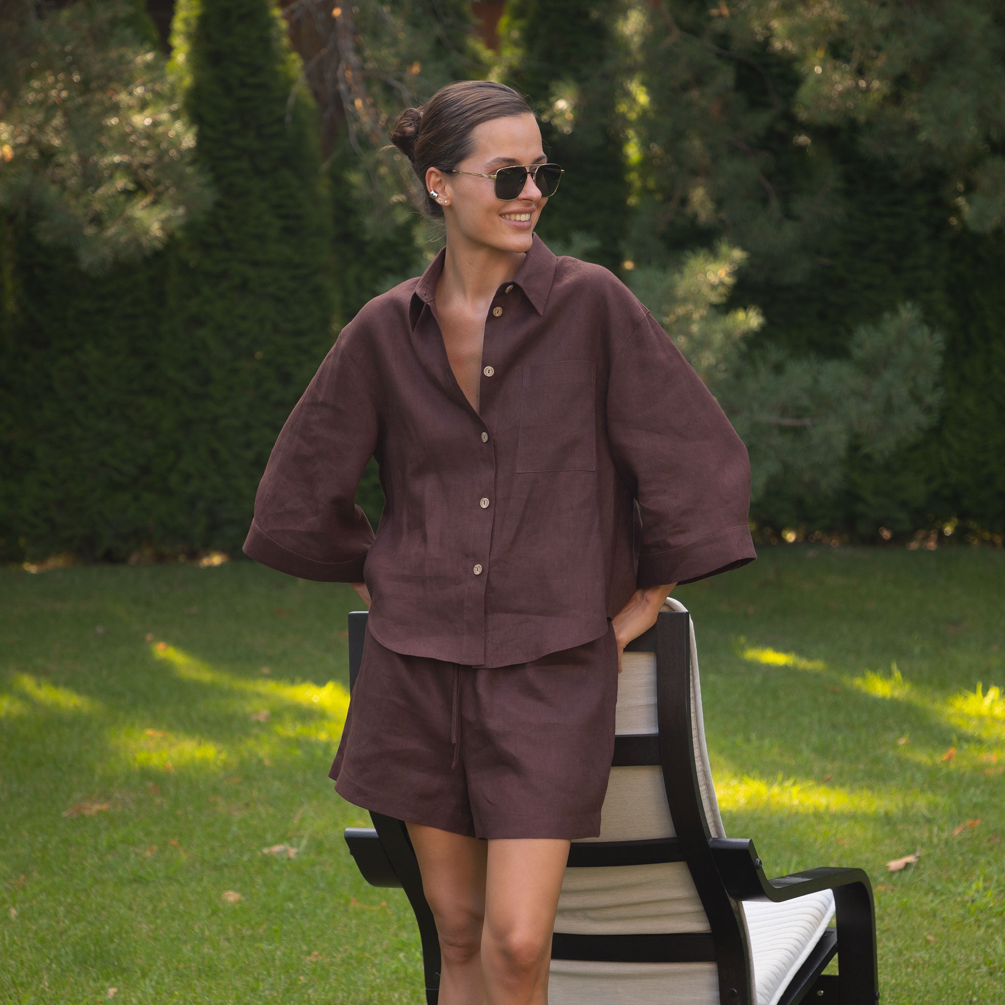 Style Tip: Pair with matching brown heavy linen shorts for a seamless look, or mix with lighter tones for a softer, natural combination.