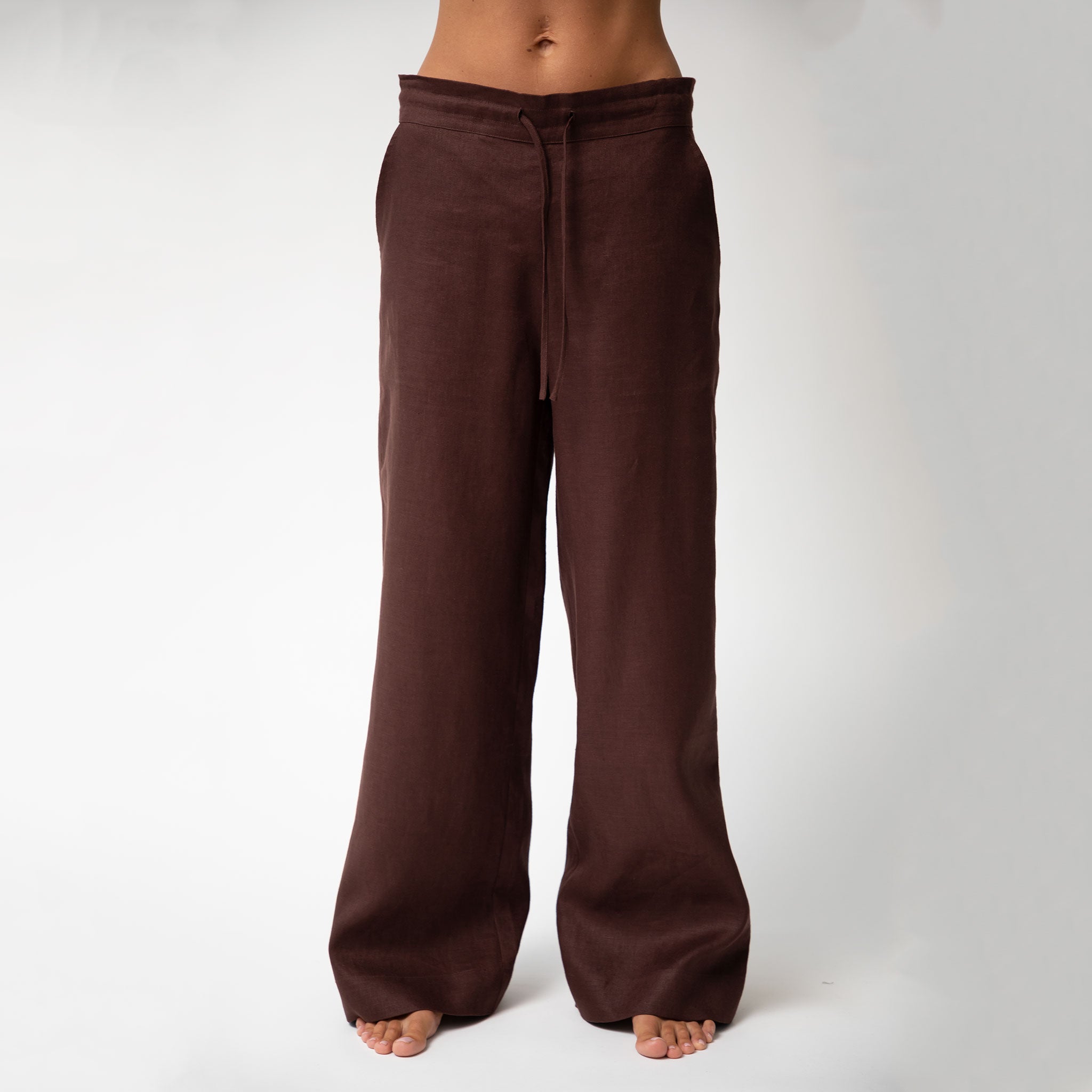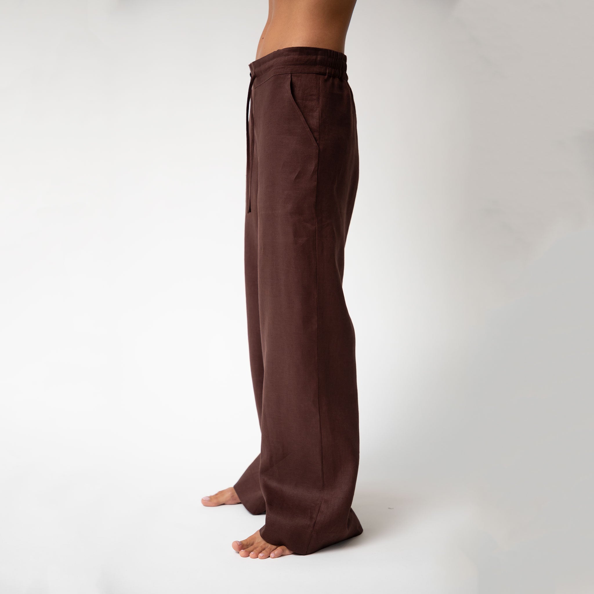 The Perfect Days Heavy Linen Pants are created from 100% heavy linen. They offer a relaxed fit and an adjustable drawstring waist. Practical pockets add utility, making these pants perfect for casual and formal settings. They can be worn with both high-rise and low-rise options.