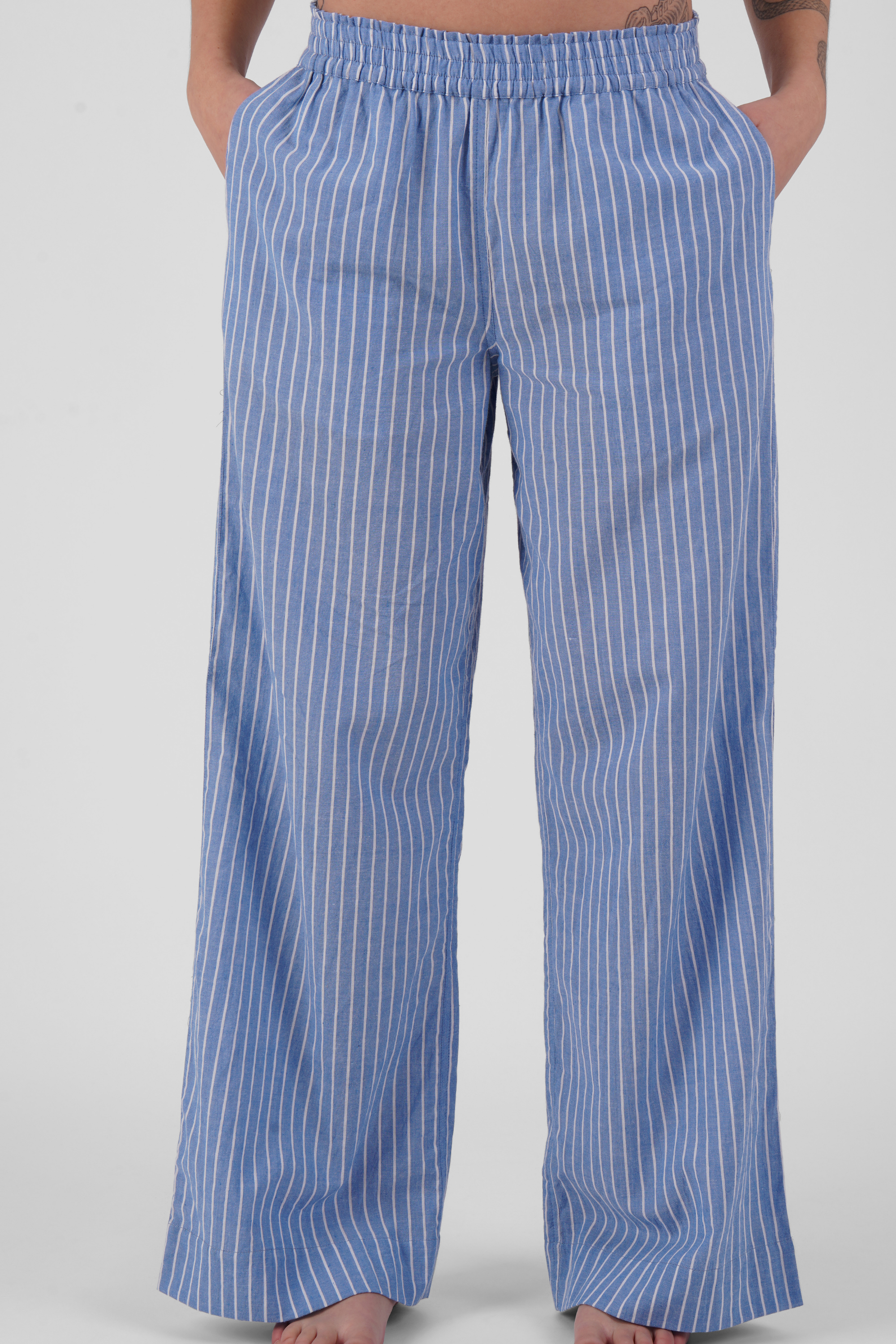 Camellia Stripe Ethical-Cotton Pyjama Trouser - Santorini Blue