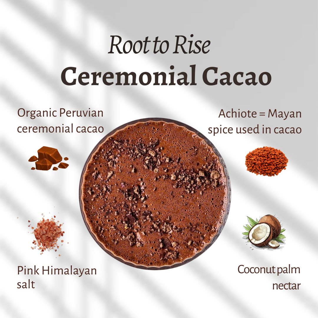 Each elixir is made with the finest organic ceremonial cacao from northern Peru. This unique cacao: