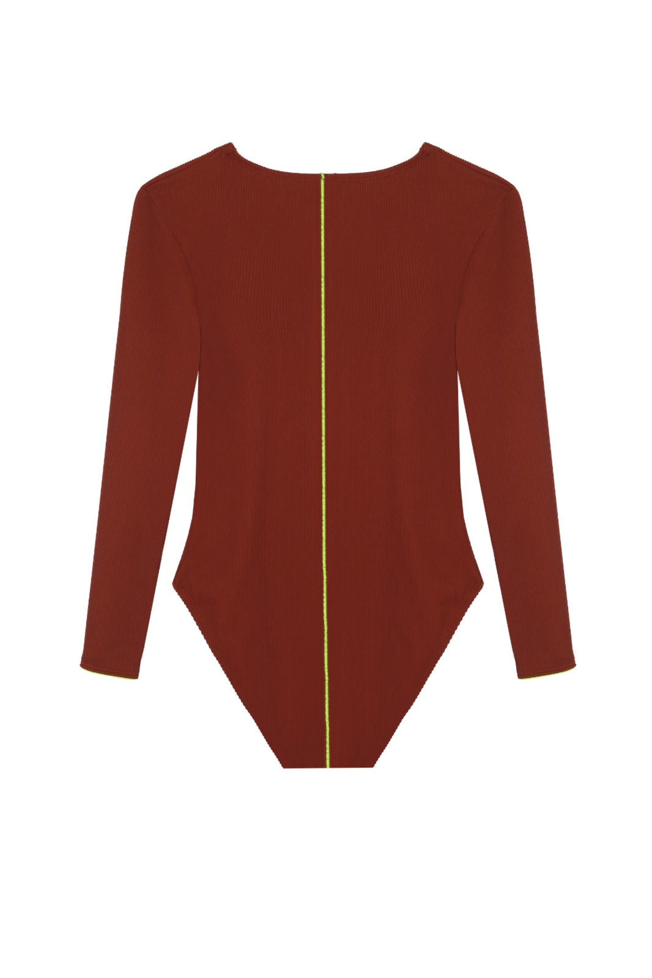 This ribbed long-sleeve surf swimsuit is a perfect blend of design and performance. The CHLOE surf swimsuit, designed with a sleek and modern silhouette, stands out with its front zipper for easy wear and a high-leg cut that enhances mobility while fitting snugly to the body.