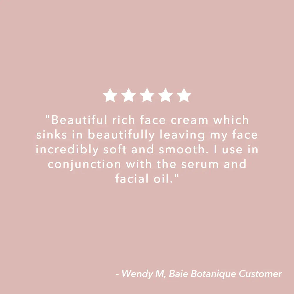A potent rose enriched organic anti-ageing face cream designed to plump, hydrate and replenish the skin protecting against free radicals and combating the signs of premature ageing such as wrinkles and fine lines. A natural moisturiser for face made with glycolic acid, which helps produce elastin, stimulate collagen and exfoliate dead skin and impurities.