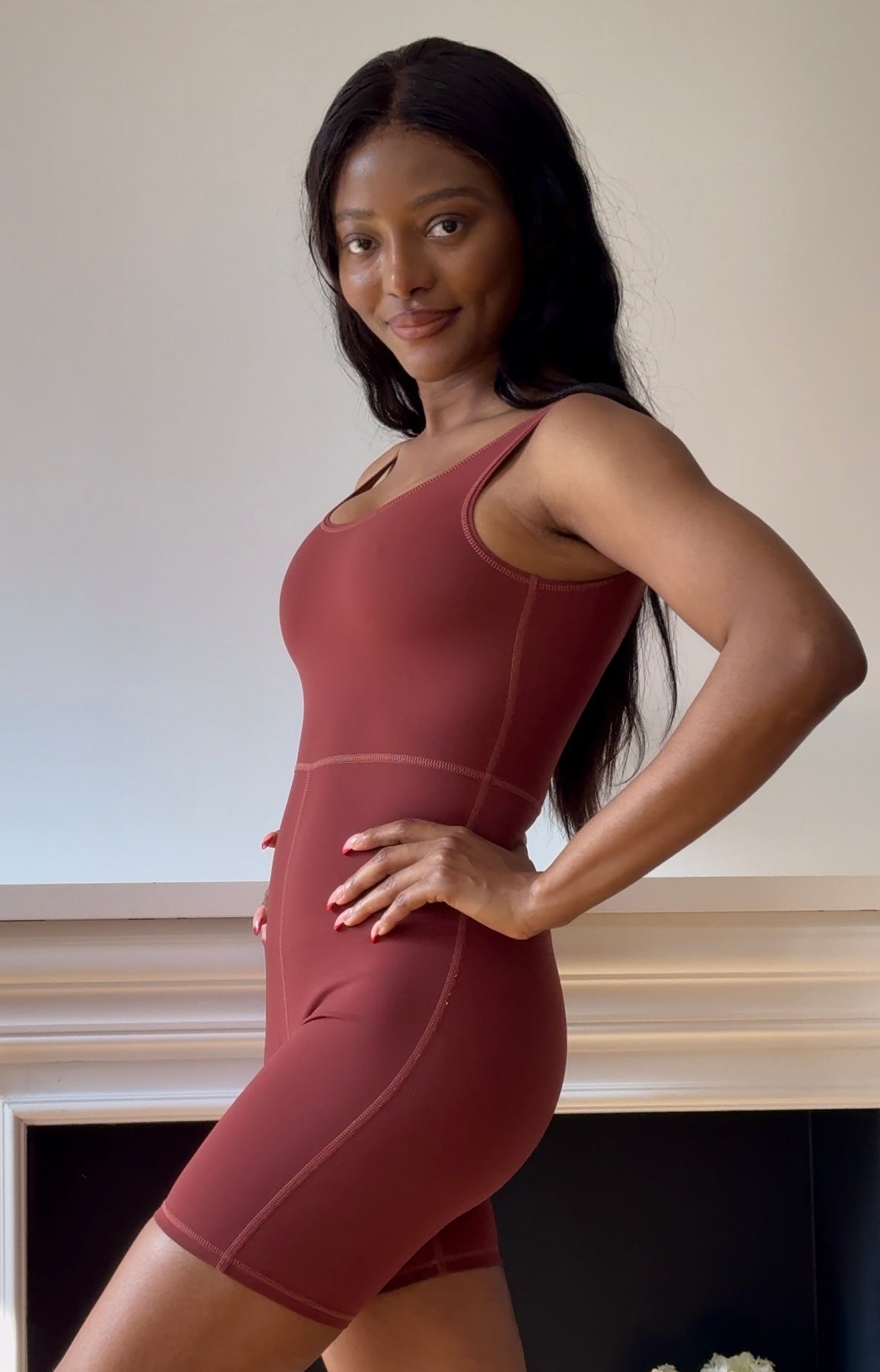 With a halter back, a biker cut and thin straps, the La Divine Jumpsuit is ideal for soft sports or for everyday wear. It gives a timeless and elegant silhouette. Wear it to pilates class or with a large open shirt, high socks and a pair of sneakers: it is indeed Divine!