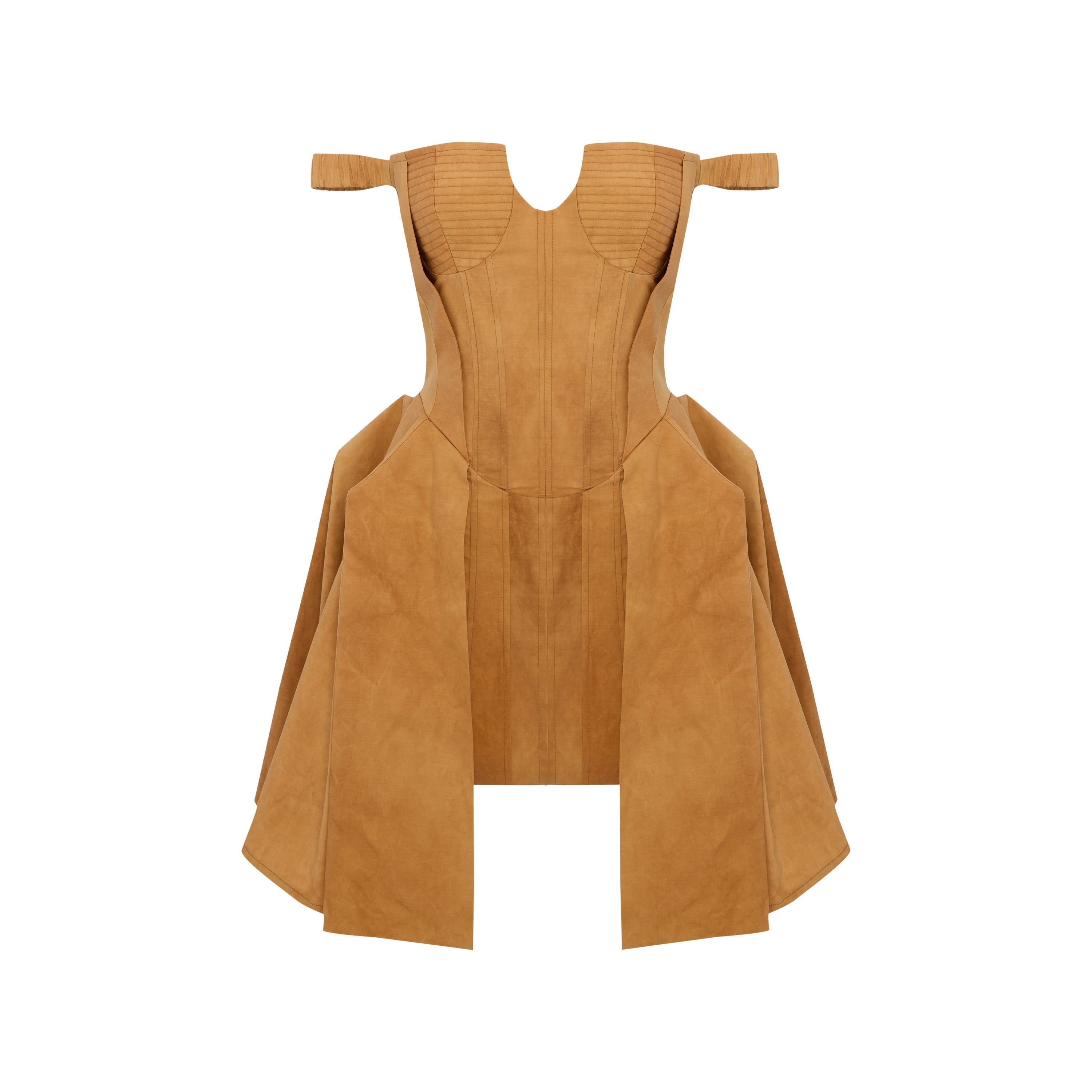 This dress features a corset-style bodice that contours to the waist, creating a beautifully structured and flattering silhouette. Made from high-quality fabric, it combines elegance with support, enhancing the body's shape. The corset detailing adds a sophisticated touch, making it perfect for both formal events and special occasions.