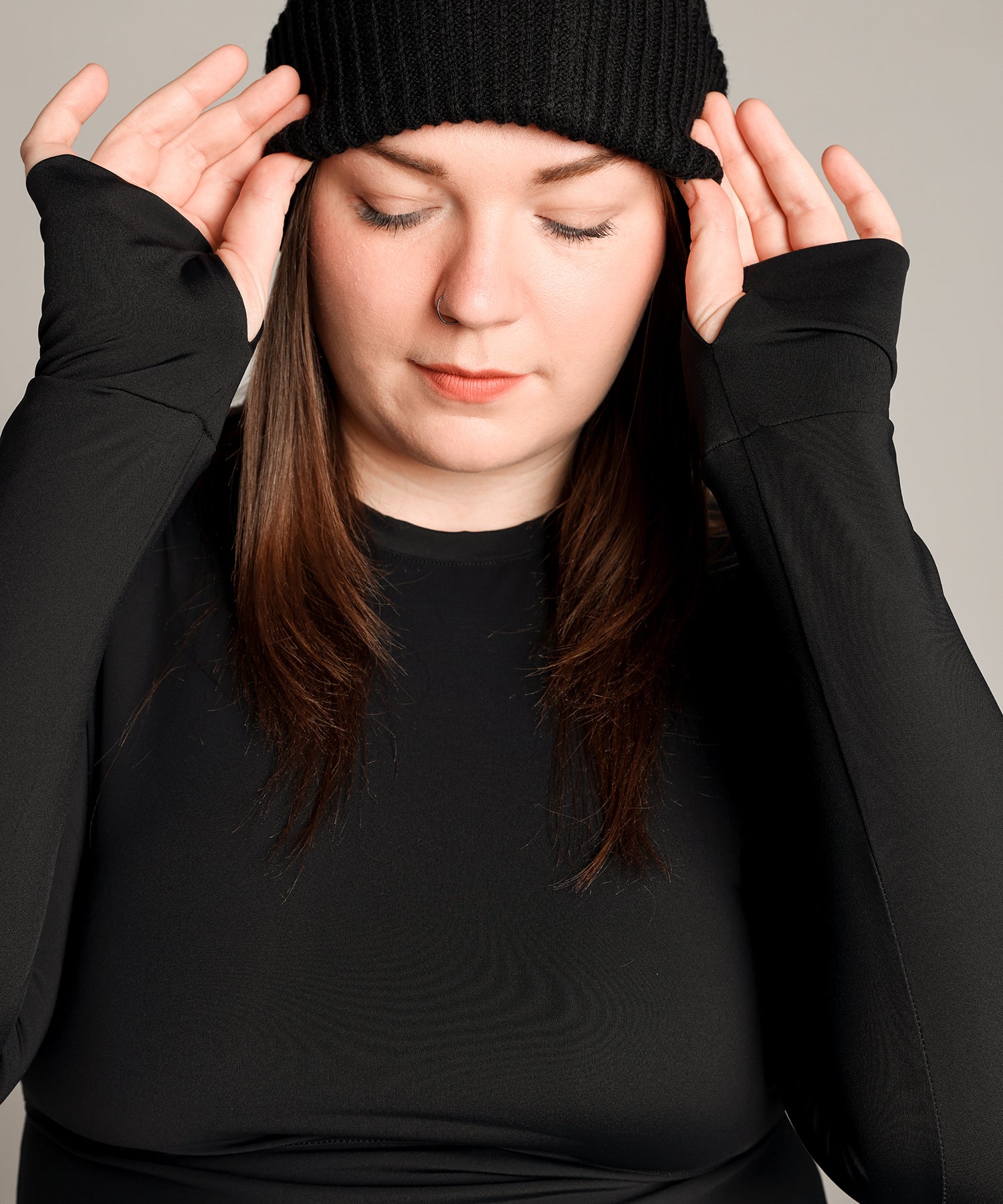 Our compression top fabric is made with ECONYL® Regenerated Nylon. A strong, thick fabric that is never see-through. Moisture-wicking panels on the back and under arm keep you feeling fresh during your work out.