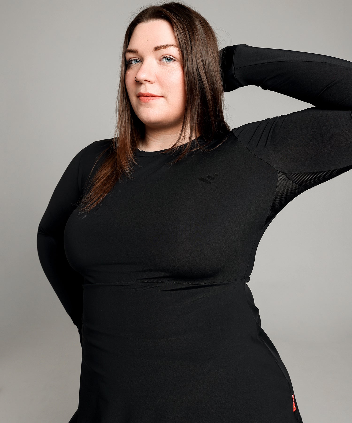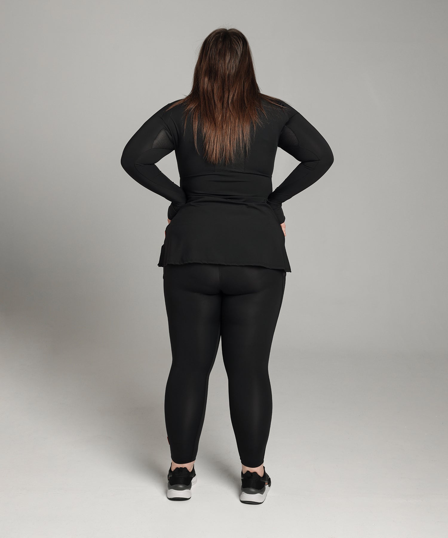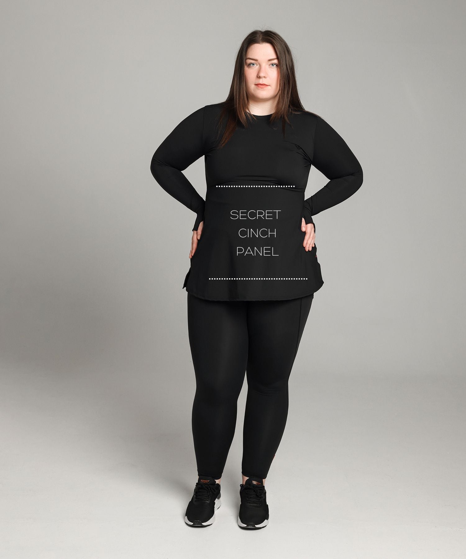 Sculpts the body, lifts and supports so you can work out with confidence. Featuring our unique design cinch panel underneath the top layer, that you can tuck into your leggings giving you the freedom to burpee, jump or give that difficult yoga move a try knowing that you are covered and supported.