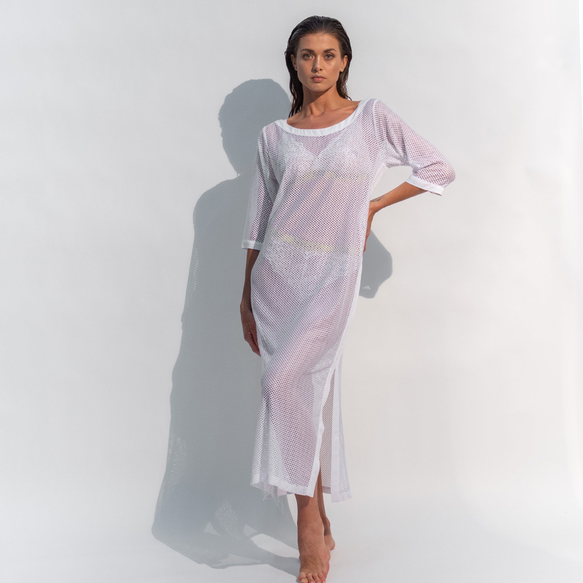 The mesh Daring Net dress is perfect for layering over a swimsuit. The fitted cut with wide piping along the hips perfectly emphasises the silhouette. The basic shades of the line make it as versatile and indispensable as possible.
