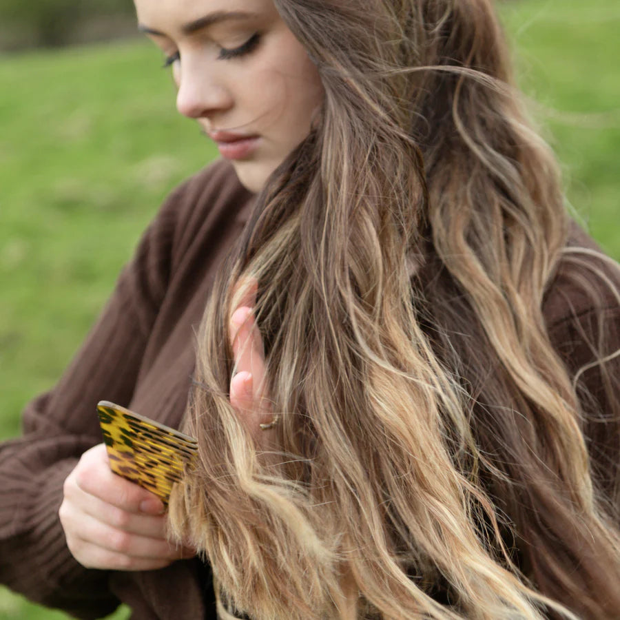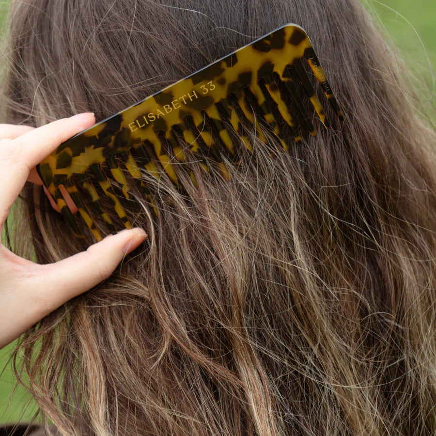 Discover the Elisabeth 33 Detangling Rake Comb: Handcrafted in cellulose acetate with tortoiseshell tones and adorned with the Elisabeth 33 logo. Perfect for gentle detangling, this comb is ideal for long, thick, curly, coarse, or frizzy hair. Elevate your grooming routine with this timeless classic