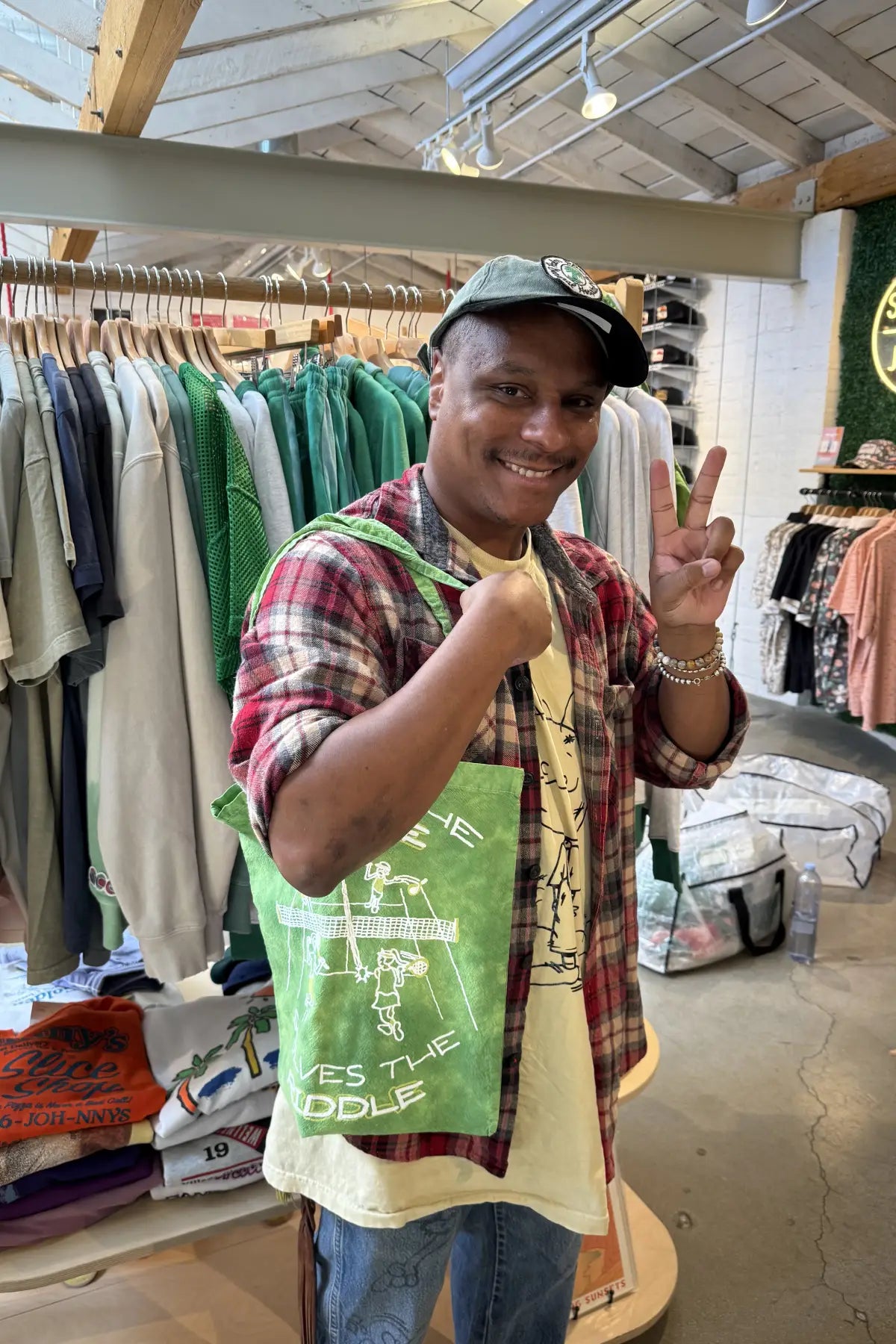 We made a handful of these totes, garment washed in a fun and vibrant green dye. The bags measure approx. 14.5 inches in height X 13 inches. Perfect to stick your racquet in or take a trip to your local Trader Joe's.