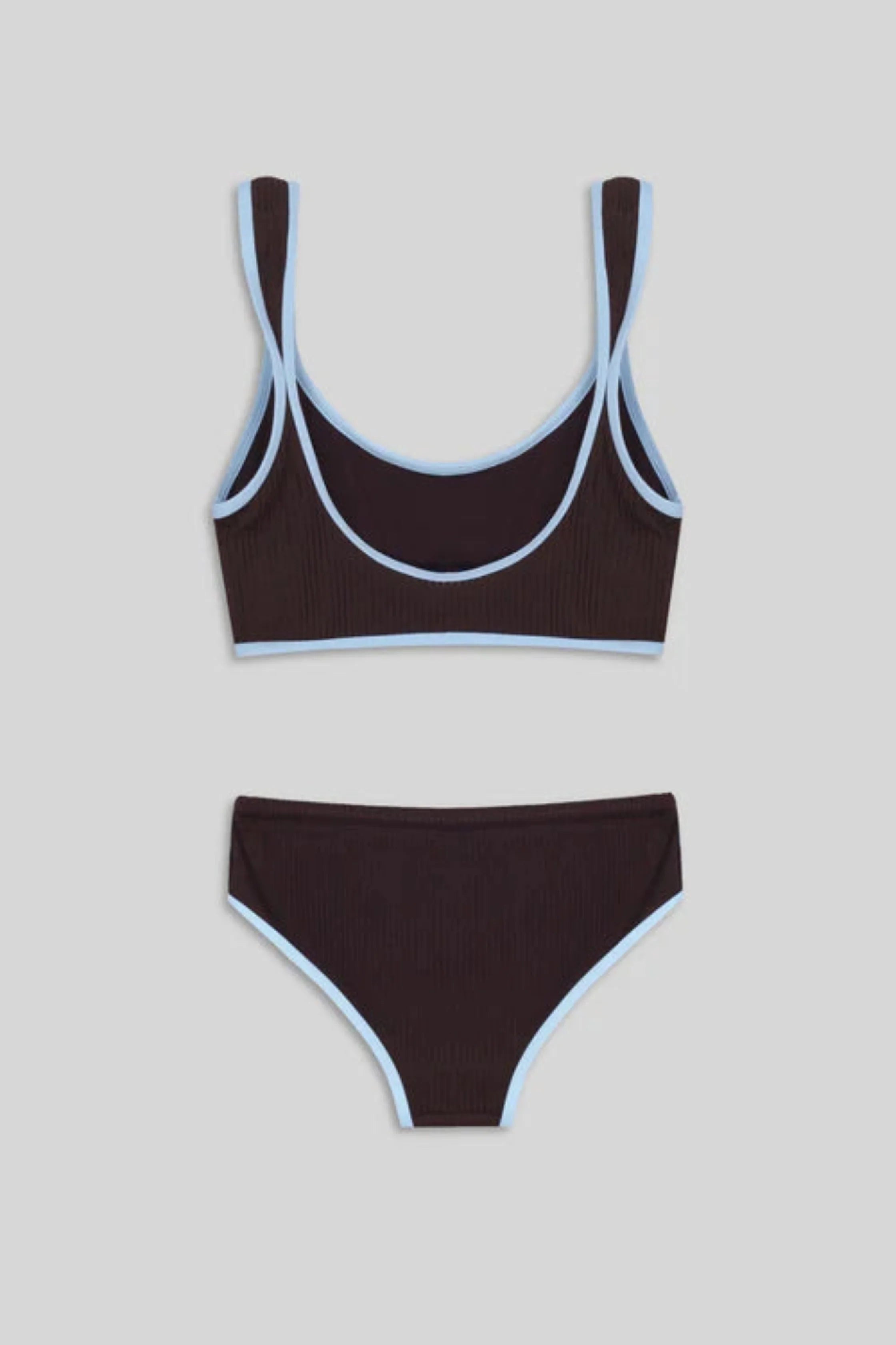 This bikini bottom features a low-rise cut, front tie detail, and trims on the legs, giving it a modernized vintage feel. It has a shorts vibe, but it's not quite a short. You can pair the Duet top with this bottom or the other classic-cut bikini bottom.