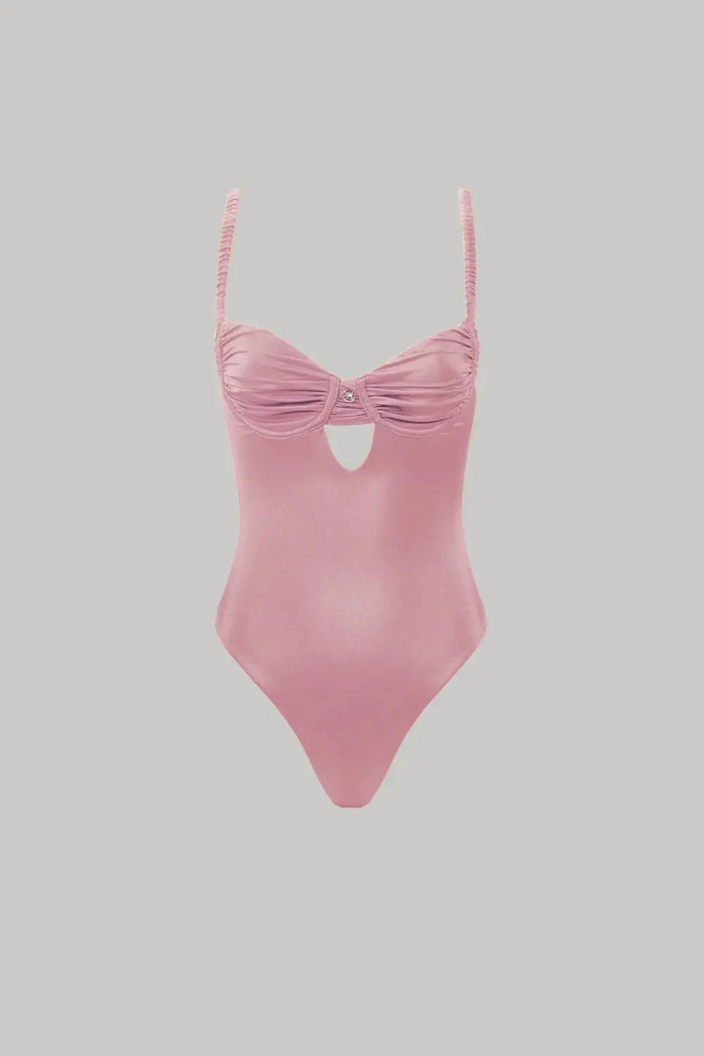 This underwire one-piece swimsuit ensures optimal support, shape, and style. The cups are contoured to accentuate your curves for a flattering look, while the front & back cutouts exhibit an alluring hint of skin. The adjustable straps are crafted with a secure elastic fit to ensure an optimal shape conforming to the body. The swimsuit is made of smooth, subtly sheened fabric, and it includes three back loops for size customization. Shell and lining: 80% nylon, 20% spandex.