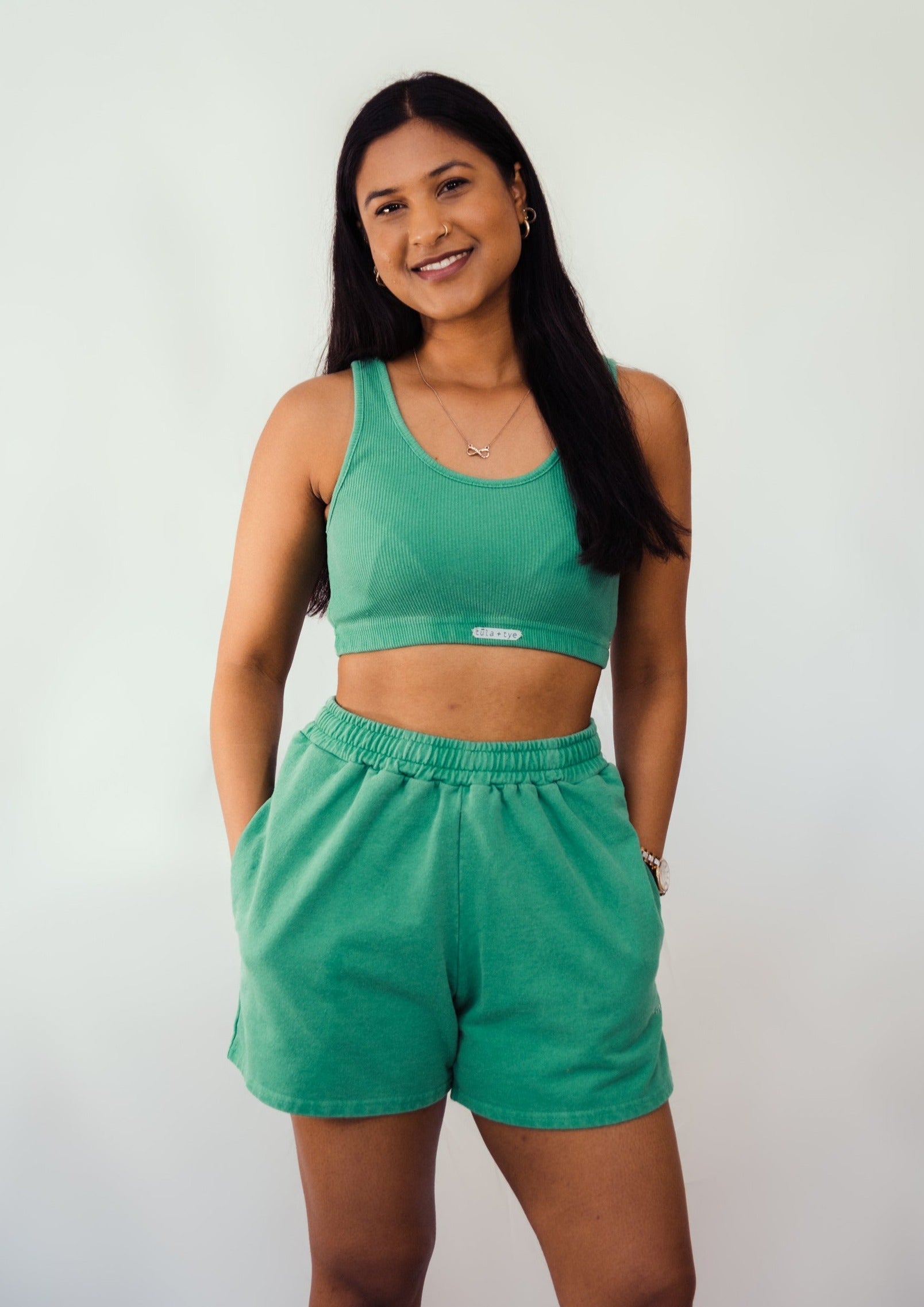 Our bralette-style cropped vests are the ideal inner or outerwear, made from recycled ribbed fabric and have an elasticated band for support. Made with our very own Three-Mile Threads™ hyperlocal production process.