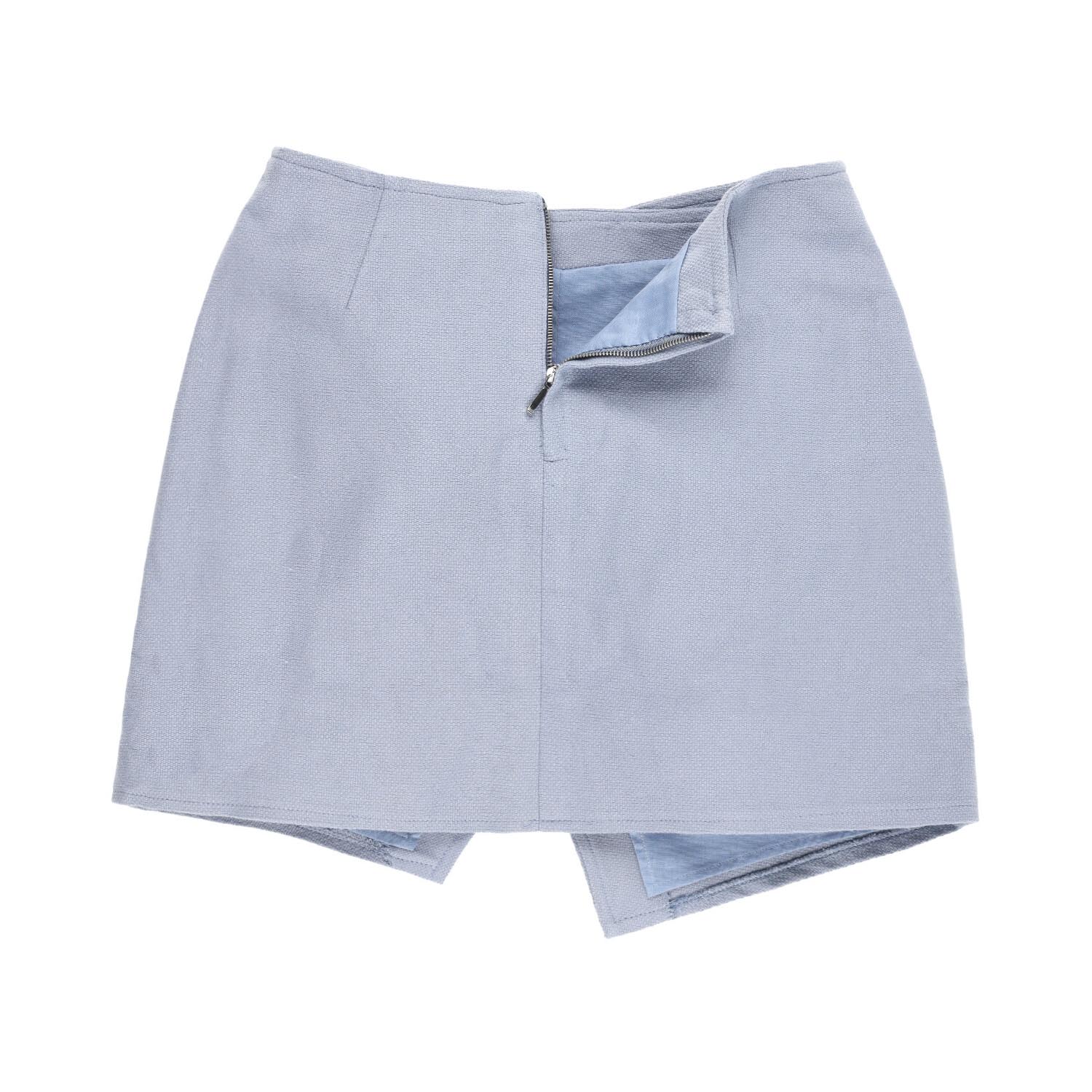 Perfecta para llevar a conjunto con el top Naia. Está confeccionada en un tejido con textura, compuesto 100% de algodón orgánico. La falda es una sola pieza que cruza en la parte de delante con un ligero corte evasé y cierra detrás con una cremallera.