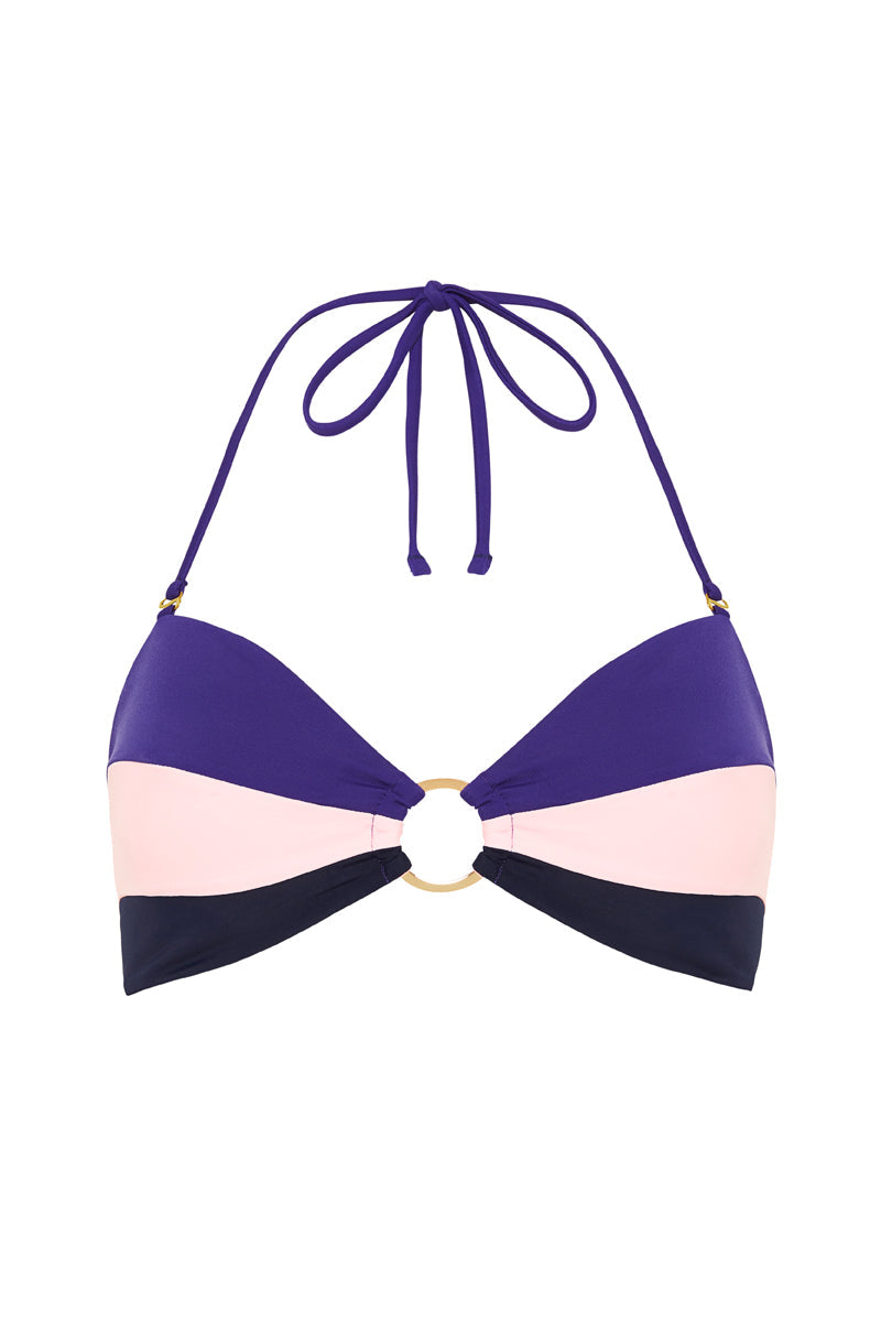 Inspired by the soft glow of sunrise, the February 06:50 Bikini Top is a refined blend of style and versatility. Featuring a panelled design, a centre-front metal ring, and a removable halter neck strap, this piece offers adjustable wearability for a sleek, sun-kissed look. Pair it with the February 17:23 Bikini Bottom in red-orange for the perfect coordinated set.