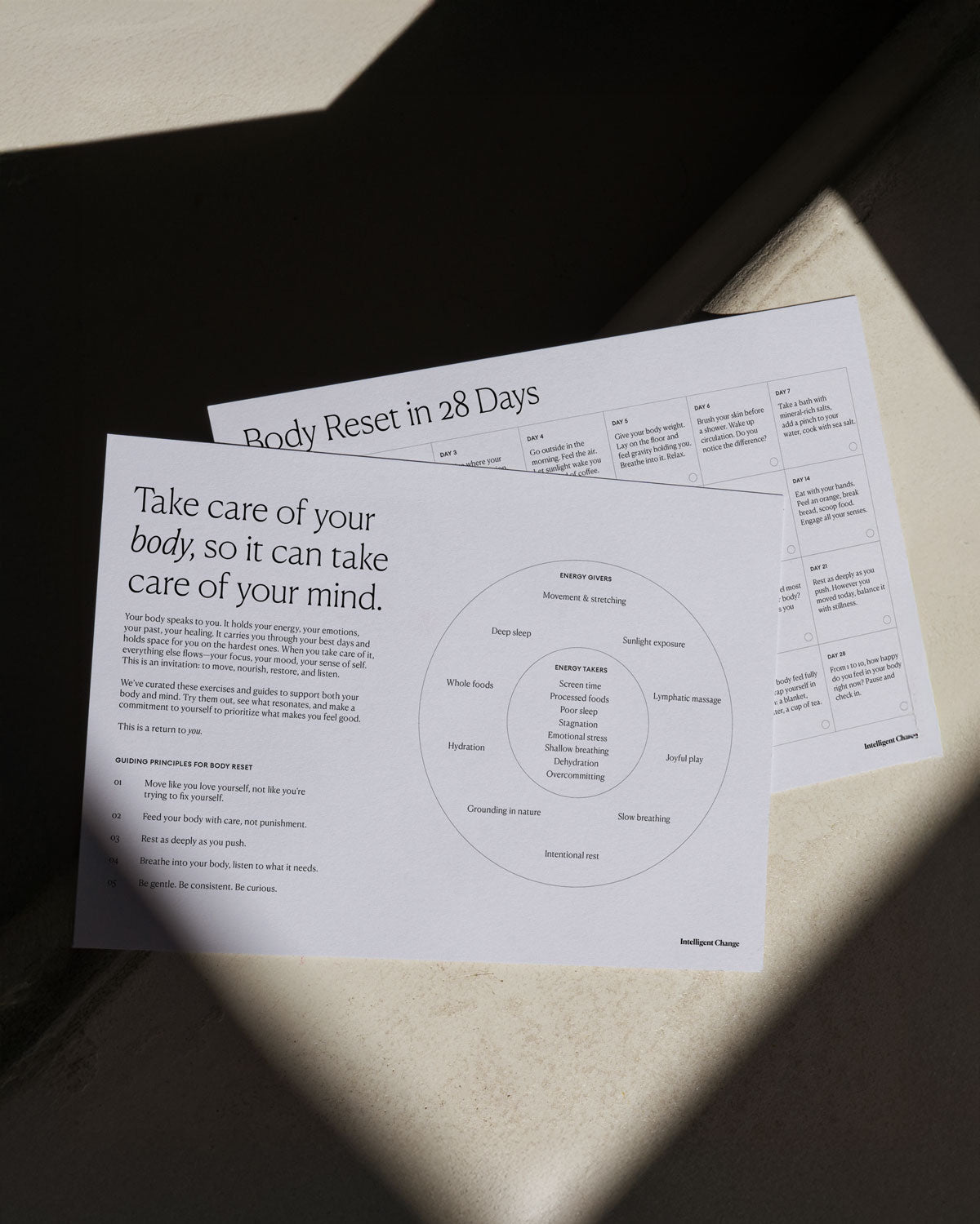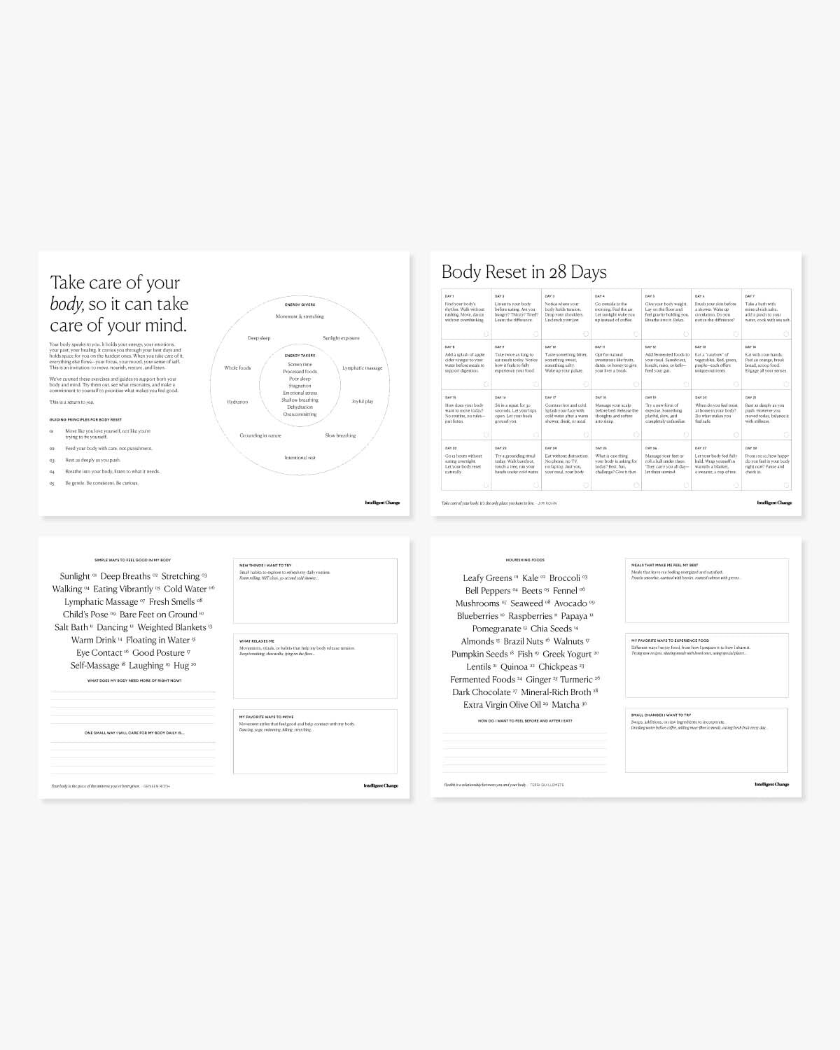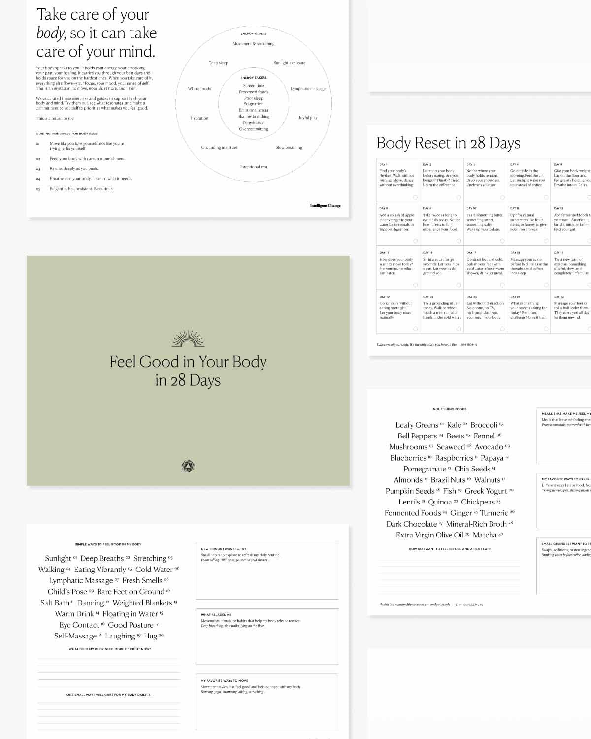 Your body is where everything begins—your energy, your focus, your sense of self. This guide is your reset. With a 28-day movement and nutrition challenge, energy givers and takers, a nourishing foods guide, and simple rituals to feel good in your body, it’s a reminder to move, restore, and take care of yourself in ways that actually last.