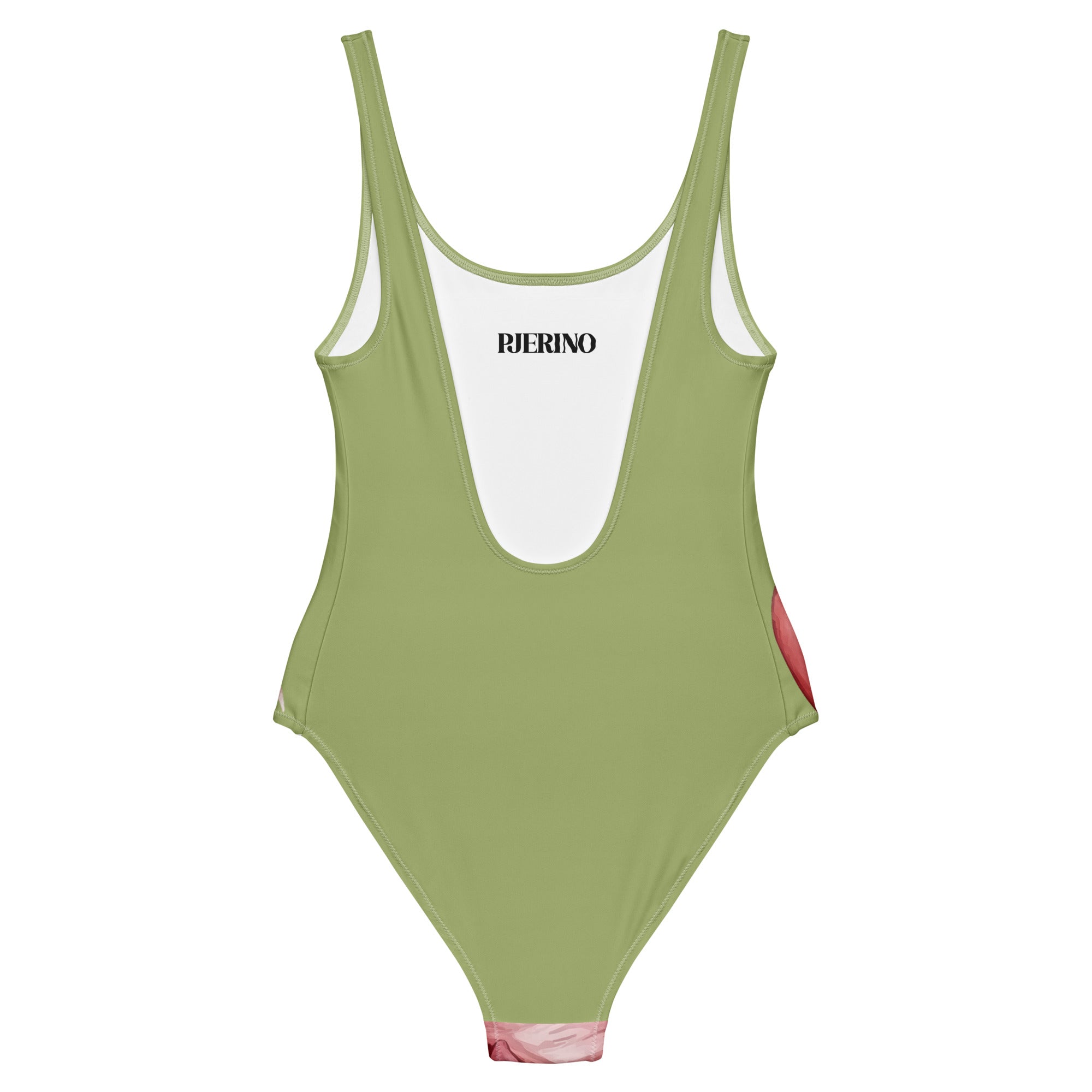 Step into tropical elegance with our Flamingo One Piece Swimsuit, a playful yet sophisticated design that captures the beauty of summer. Featuring a striking pink flamingo set against a soft green backdrop, this swimsuit blends artistry and fashion for a look that’s bold, vibrant, and unforgettable.