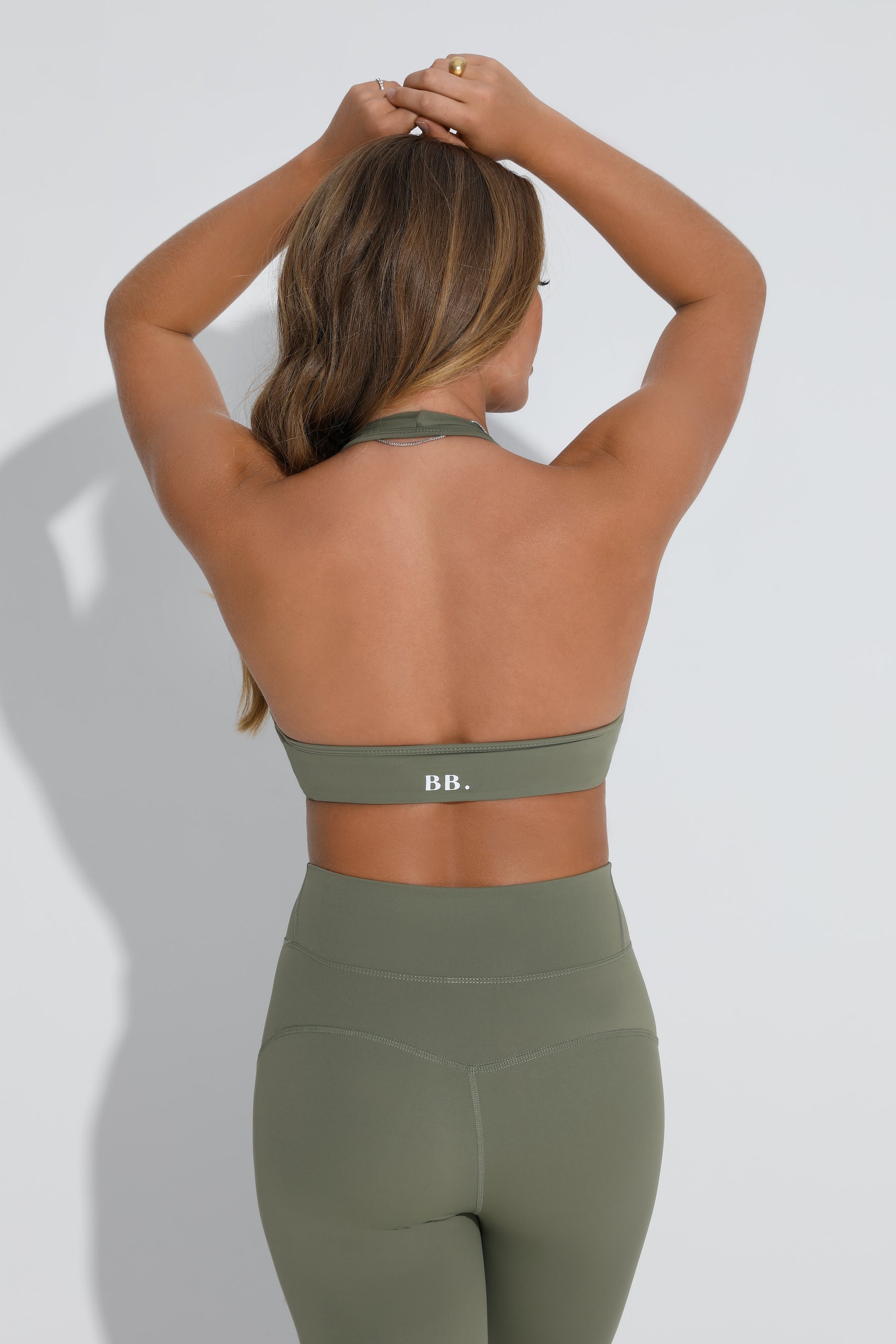 The Halter Bra you've been waiting for. The Flare Halter Bra in Sage has finally landed.