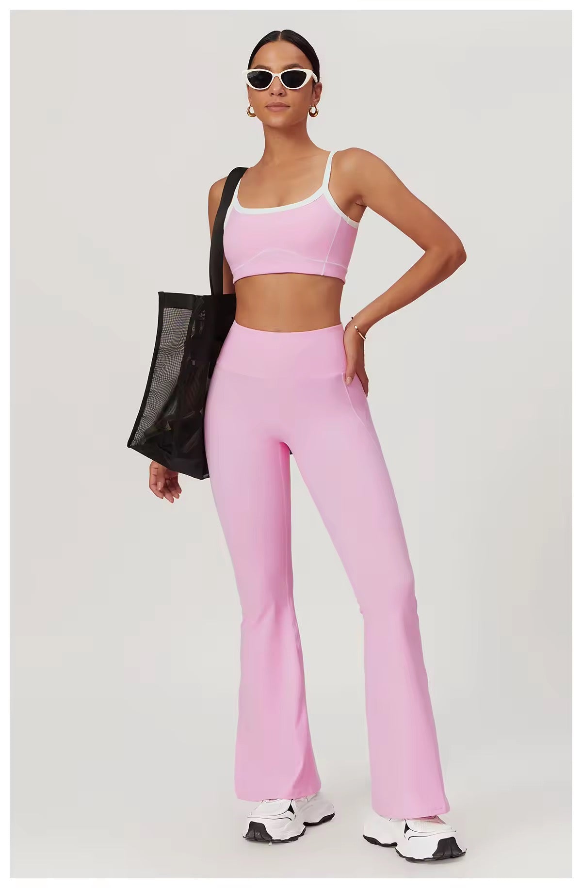 Designed for both comfort and elegance. This set features a stylish sports bra and flared leggings, perfect for your Pilates sessions and beyond.
